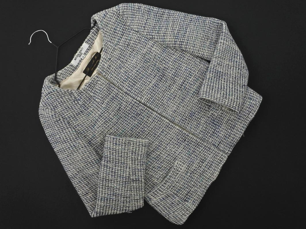 Product name: NATURAL BEAUTY BASIC ナチュラルビューティーベーシック ツイード ラメ ノーカラー ジャケット sizeM/白x紺 ◇■ ☆ fhc8 レディース