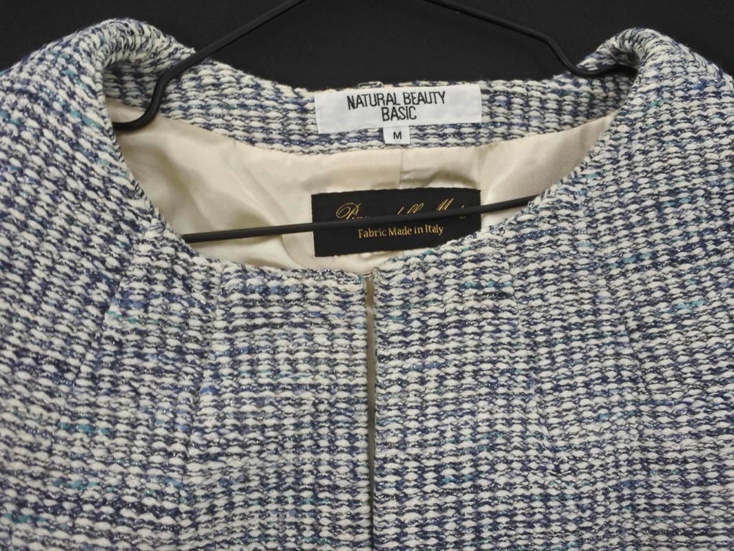NATURAL BEAUTY BASIC ナチュラルビューティーベーシック ツイード ラメ ノーカラー ジャケット sizeM/白x紺 ◇■ ☆ fhc8 レディース