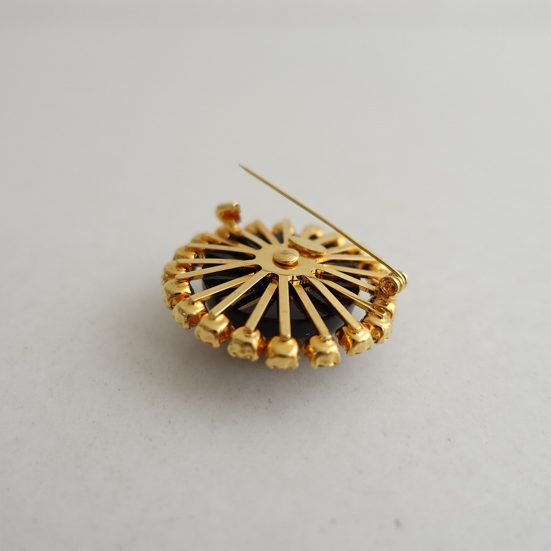 MARNIのフラワーモチーフブローチです。カラーはブラックとホワイトで、花のモチーフの様なデザインで回りにはビジューがあしらわれております。エレガントな雰囲気のアクセントになるお品物です。
