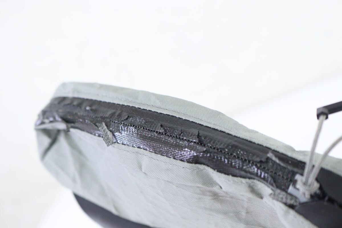 チャック部分が劣化しており、布がポロポロしています。