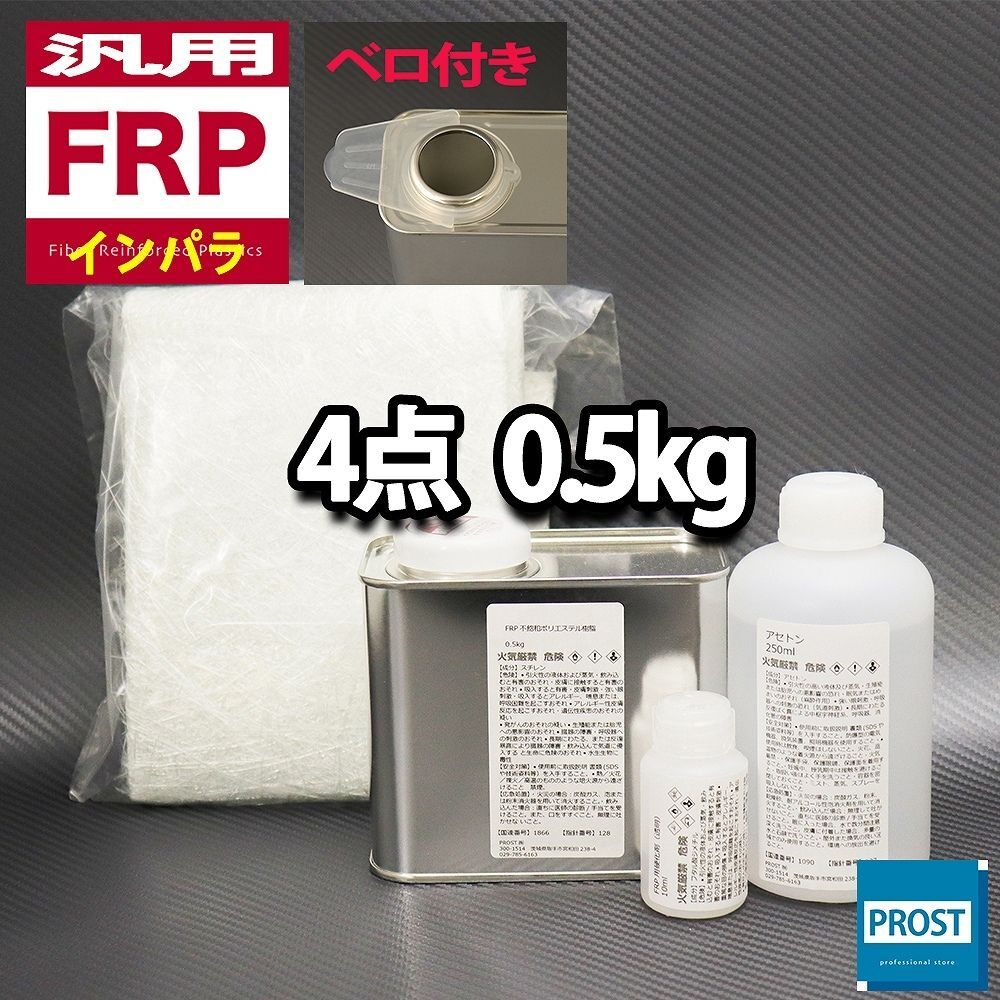 Product name: 汎用 FRP補修4点キット 樹脂0.5kg 一般積層用 インパラフィン 硬化剤 ガラスマット アセトン付 セット Z25