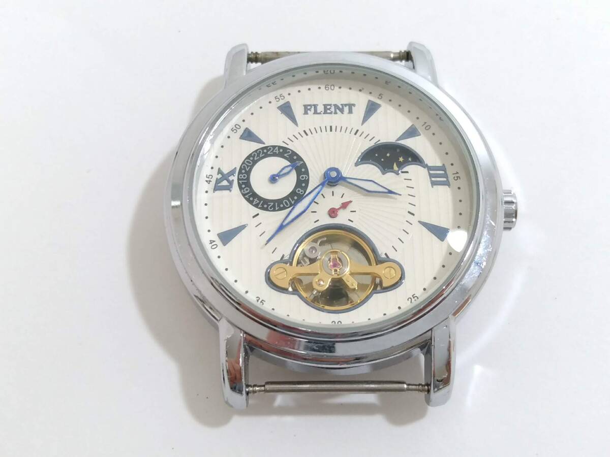 Product name: 【美品】FLENT フレント F8002G 自動巻き 腕時計/作動中/ムーンフェイス/裏スケ/リストウォッチ/ラウンドフェイス/スケルトン/01YZ092103