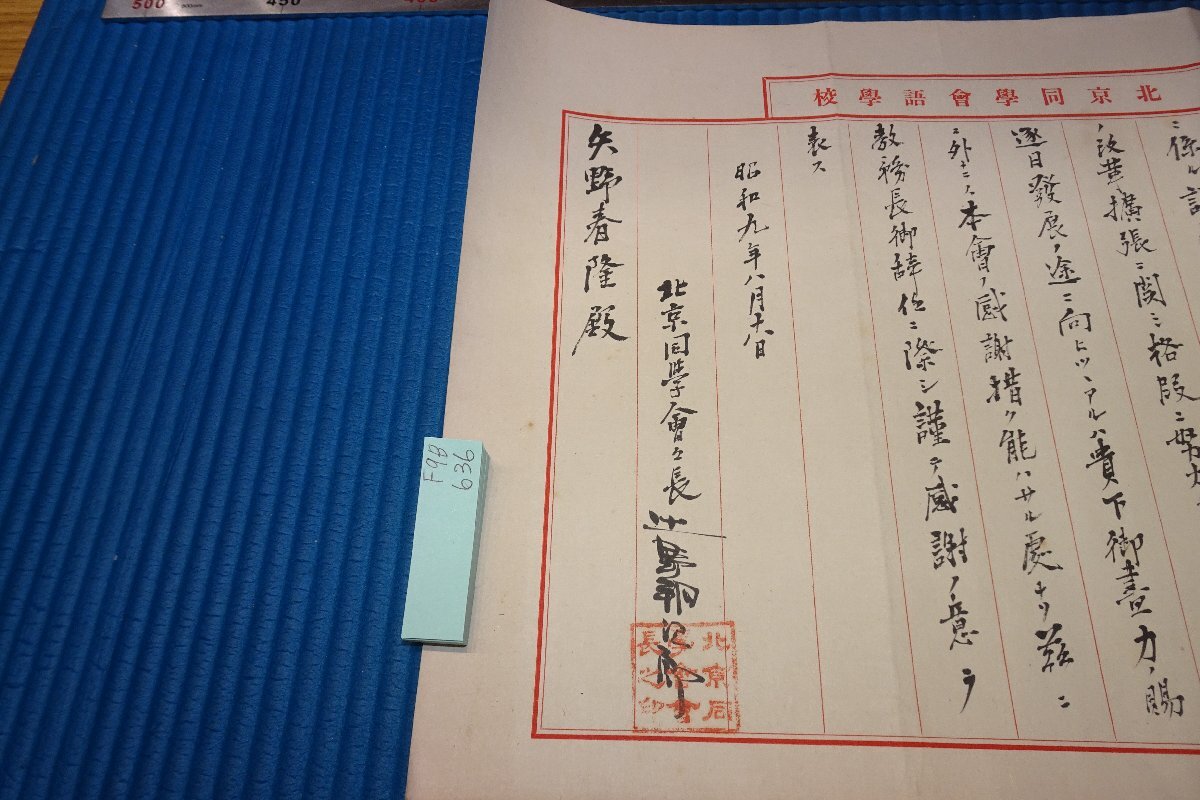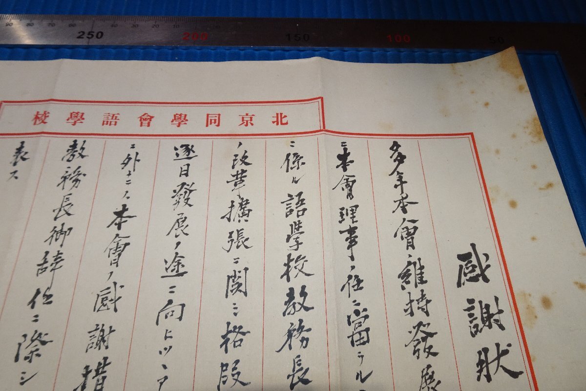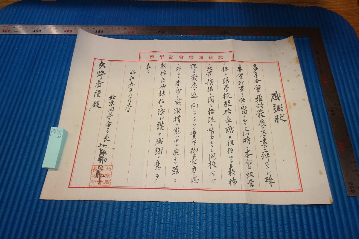 rarebookkyoto F9B-636 戦前 肉筆・北京同学會語学校・感謝状   北大・矢野コレクション   1934年頃作 京都古物