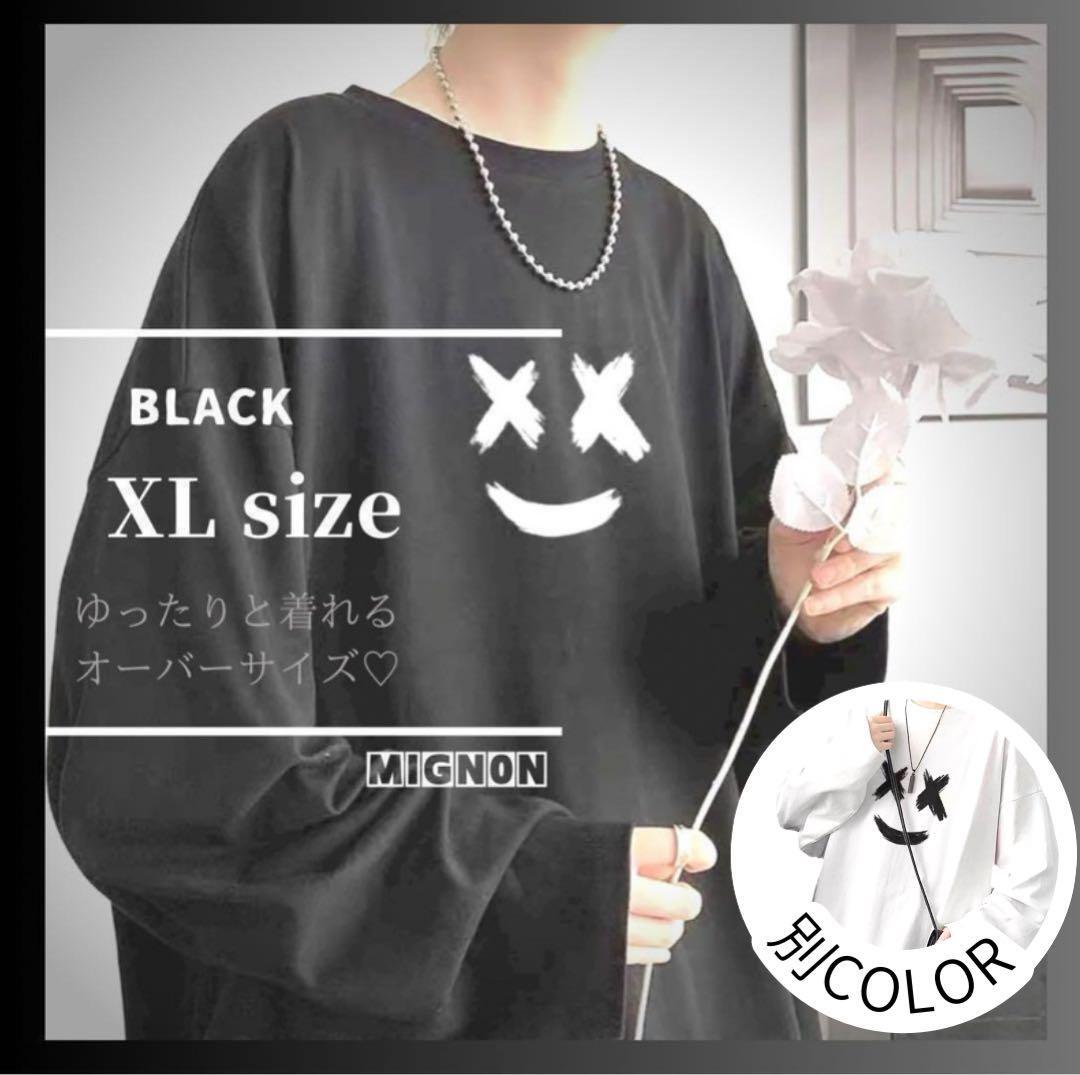 スマイリー【XL ブラック】グラフィティ カジュアル ヒップホップ 男女兼用 カップル メンズ レディース Tシャツ 534