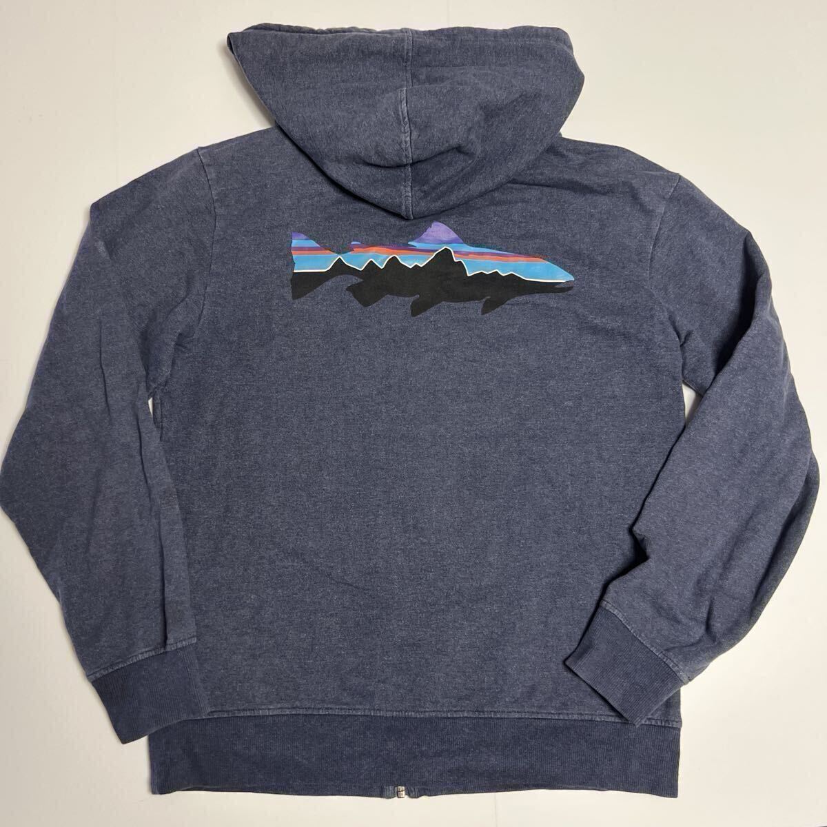激レア パタゴニア patagonia ジップ パーカー フーデット used フィッツロイ 魚 メンズ us-sサイズ ネイビー