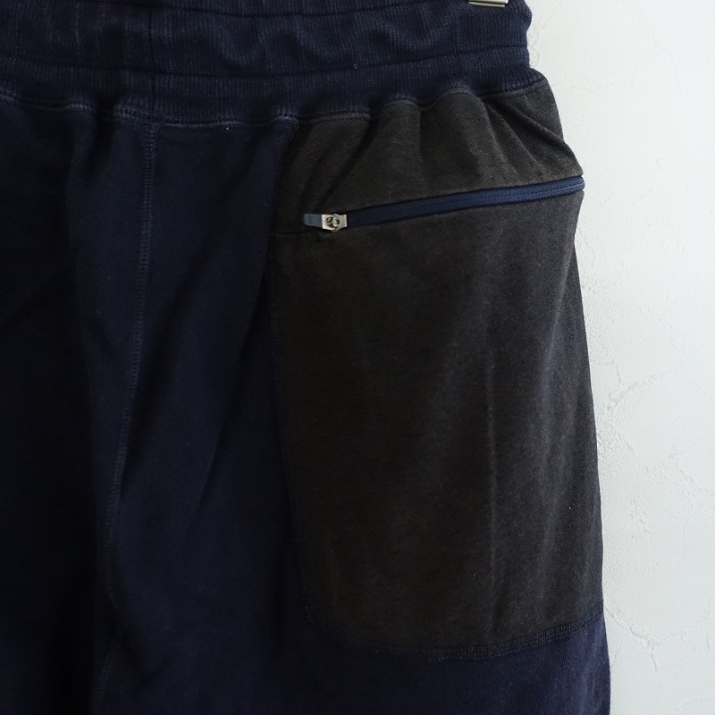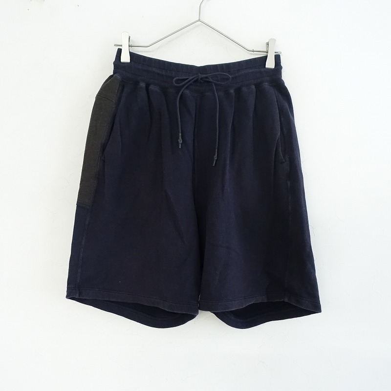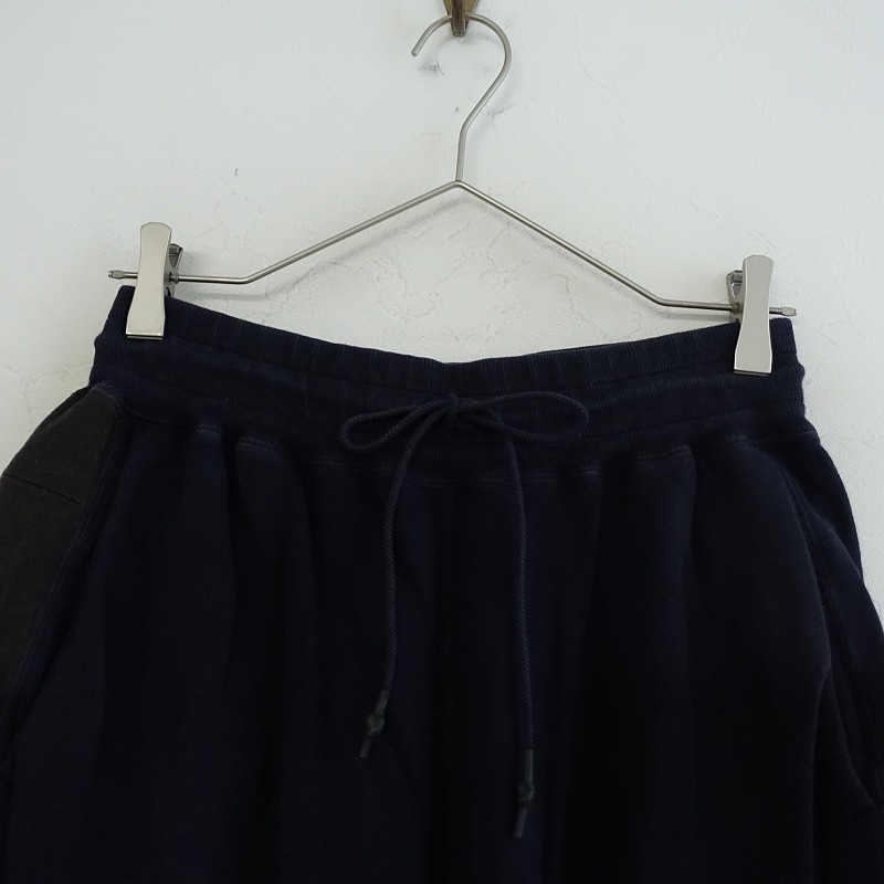 nonnativeのコットンスウェットオーバーダイ ジョガーイージーショーツです。カラーはネイビーの裏毛素材×ブラック・ベージュミックスの別地で仕立てられており、オーバーダイ加工が施されております。ウエストはゴム&ひも入り、右ヒップにジッパーポケット付きです。定価(メーカー希望小売価格)23,980円 税込みの商品です。