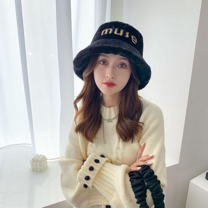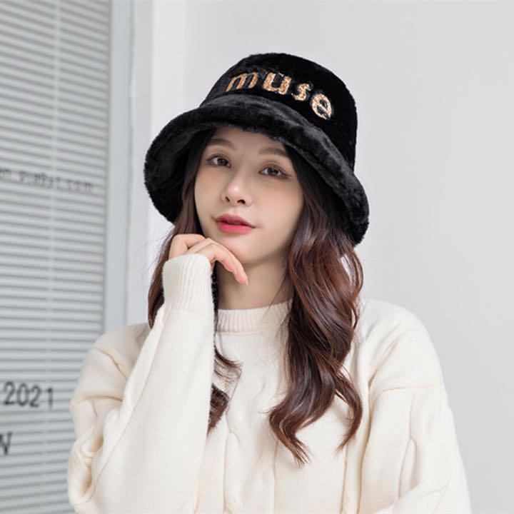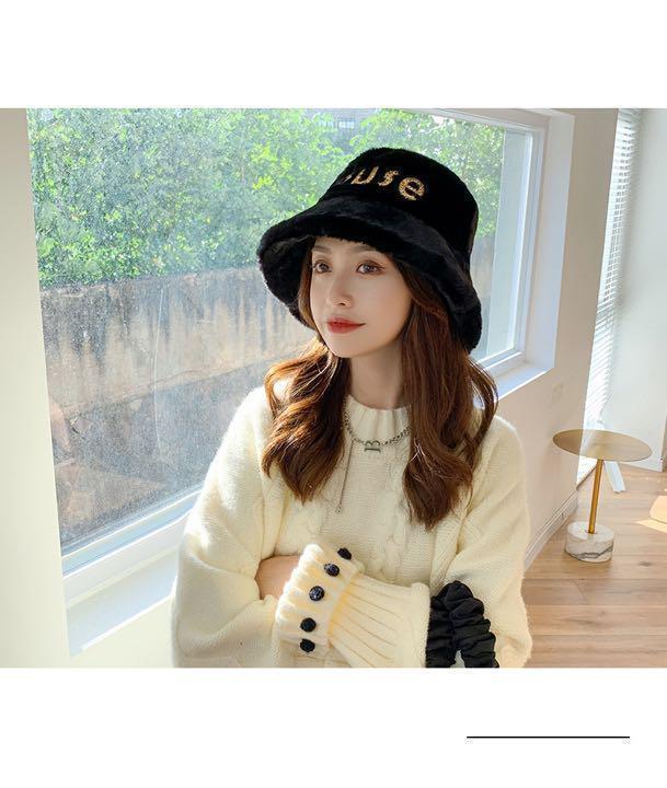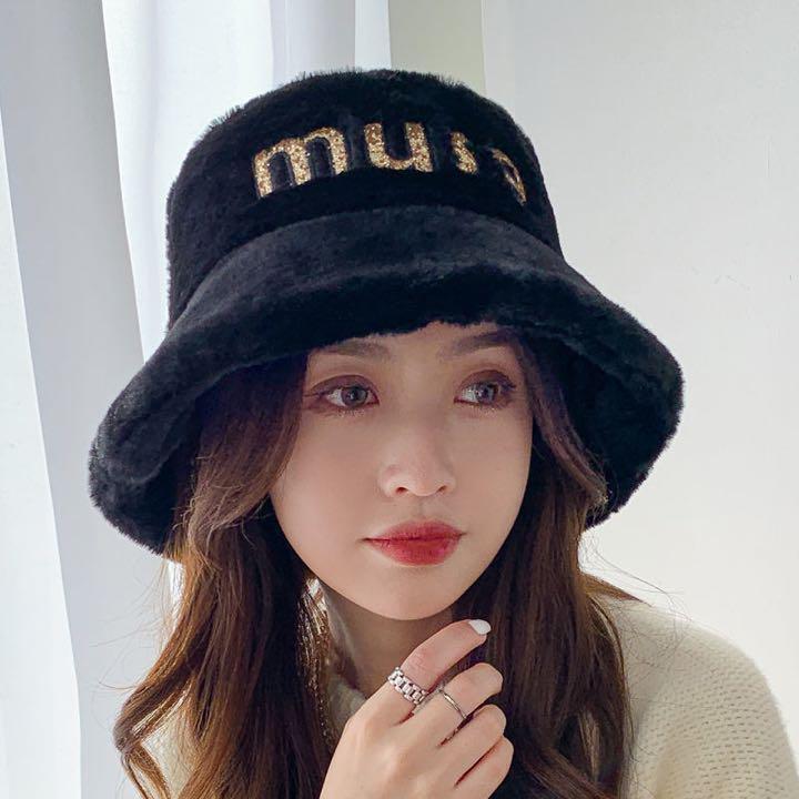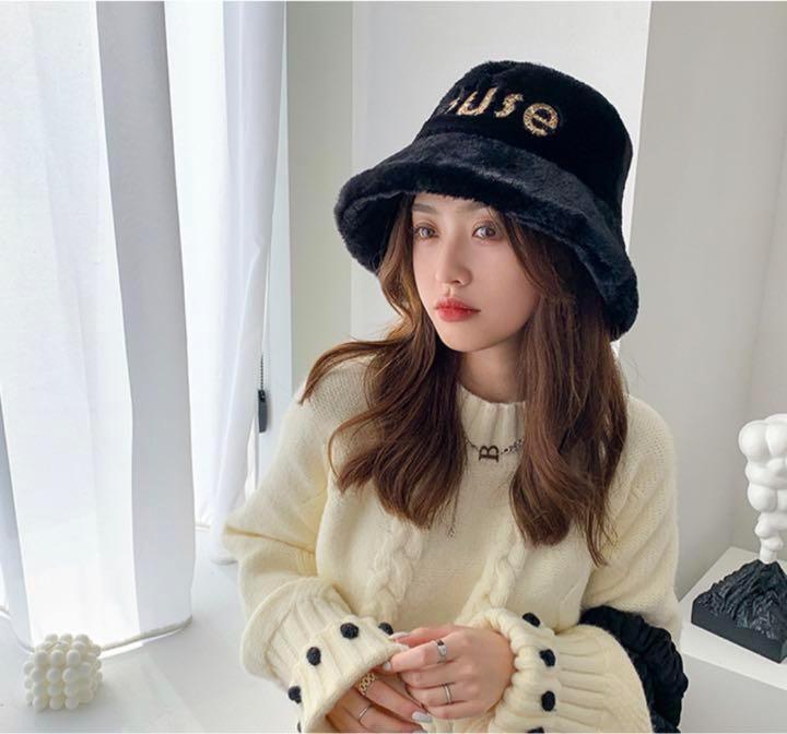 Product name: ベロア【ブラック】ロゴ バケットハット ボア ファー 小顔効果 レディースハット バケハ ファー ふわふわ 人気 流行り 防寒 191