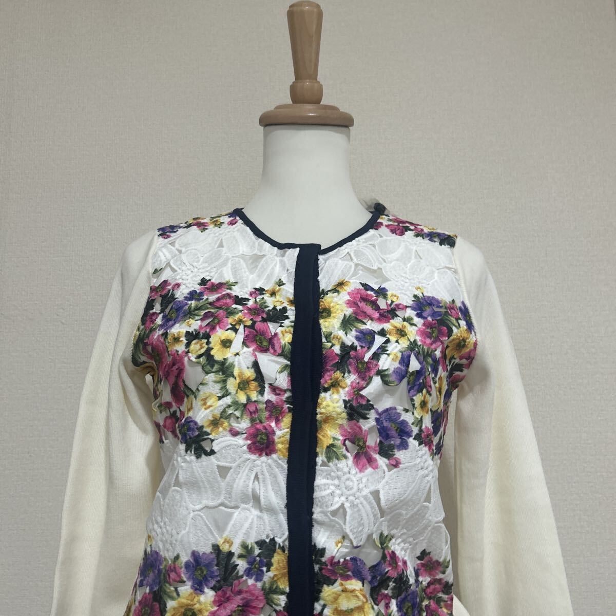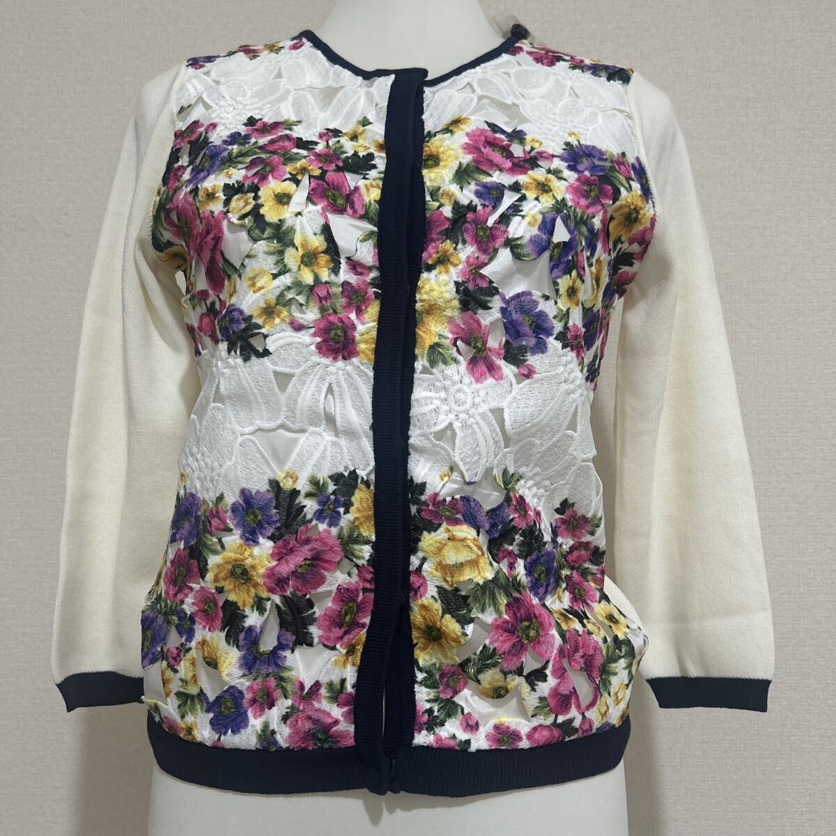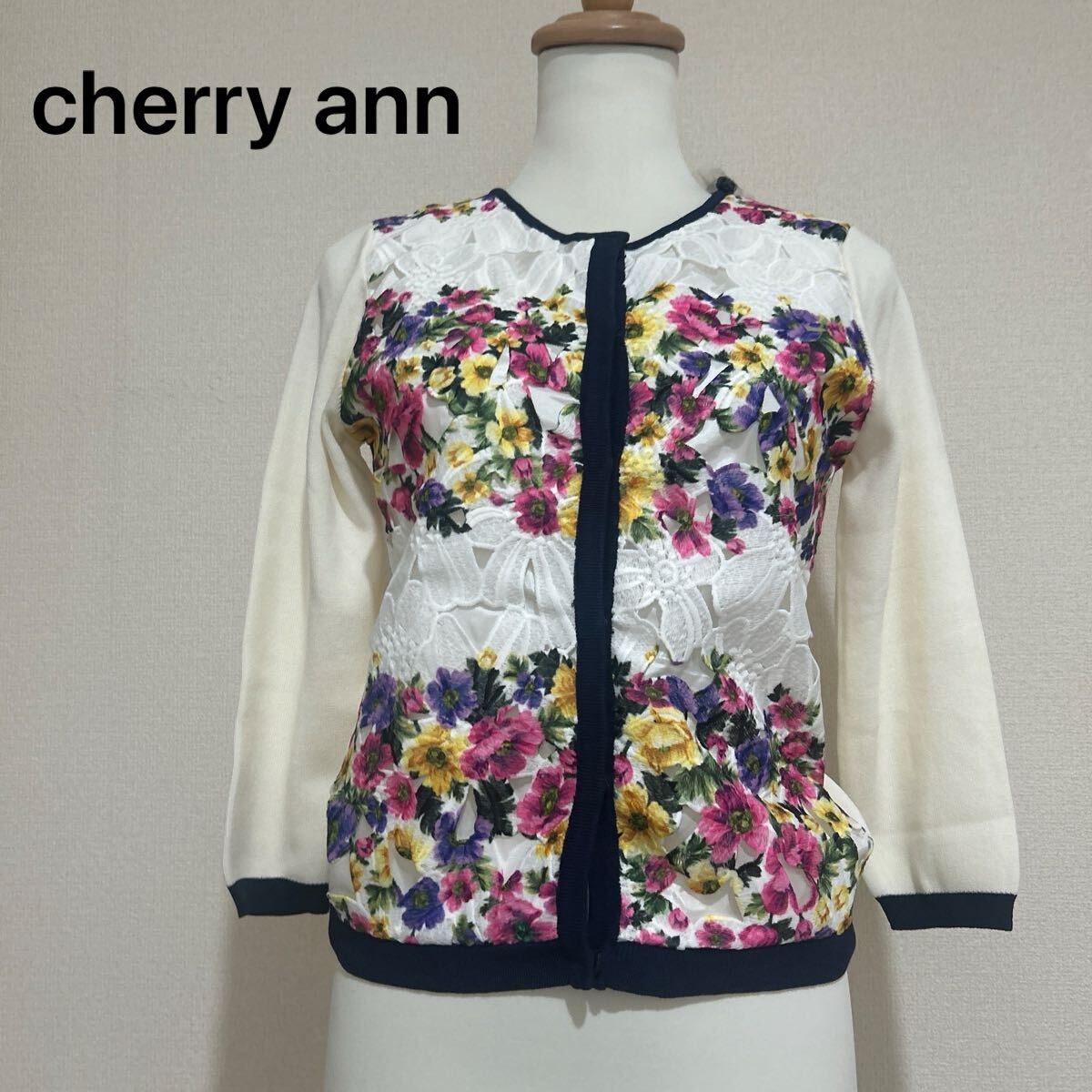 新品 タグ付き 未使用品 cherry ann チェリーアン カーディガン ニット 花柄 レース きれいめ 長袖 高級感 上品 ホワイト 白 Fサイズ