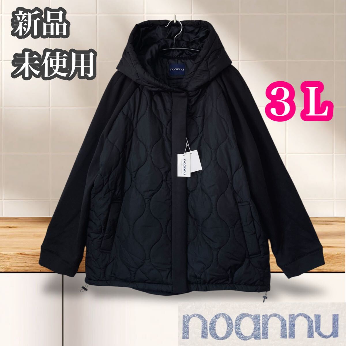 ノアンヌ 大きいサイズ キルティング 中綿入りジャケット パーカー 黒 3L