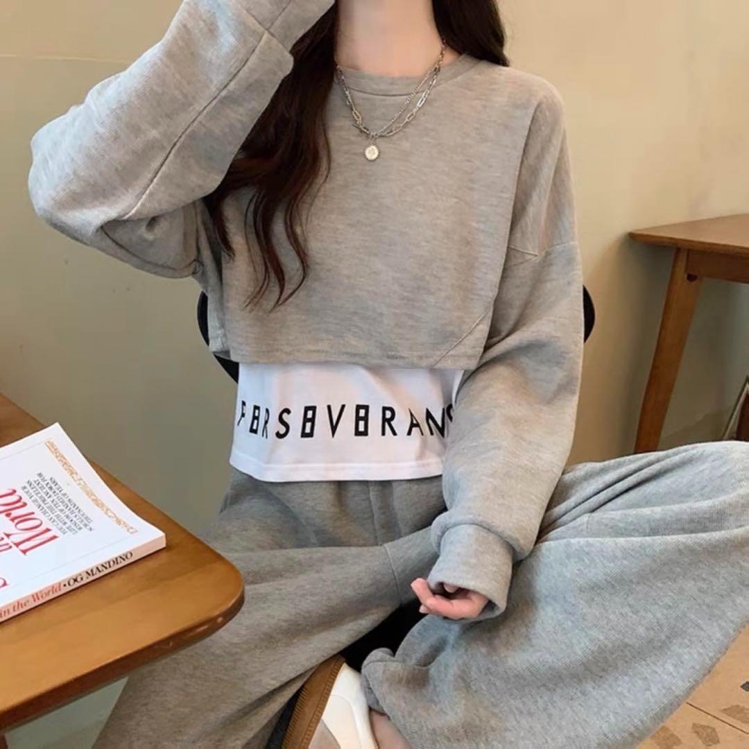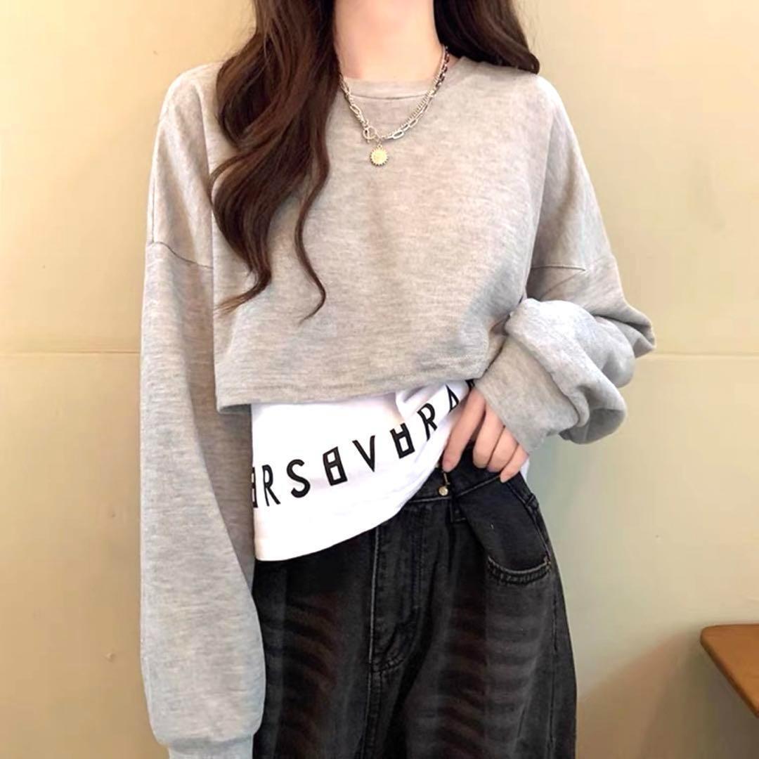 Product name: ダンス【グレー】スウェットショート 重ね着風 カジュアル 着痩せ クロップド丈 ミニ丈 ショート丈 部屋着 ルームウェア 個性的 かわいい