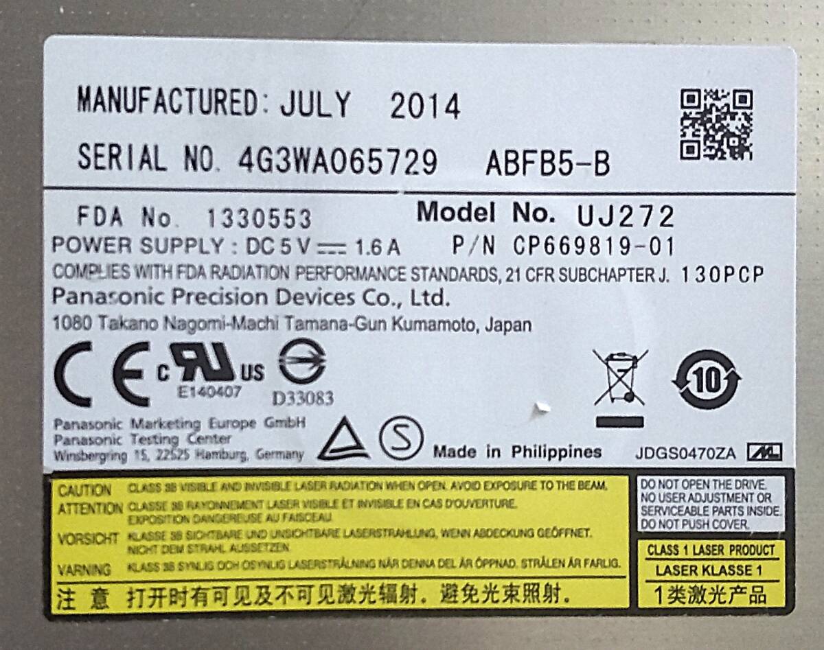 Product name: Panasonic UJ272 Slimline SATA 9.5mm ブルーレイドライブ 通電確認のみ BD