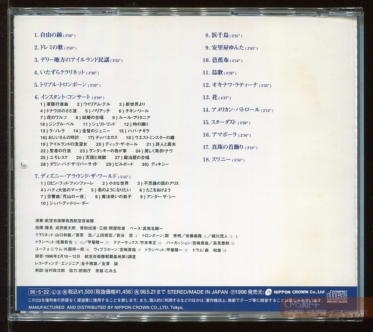 Product name: CMS2508-217>Nippon Crown┃吹奏楽プロムナード・コンサート1(ドレミの歌・芭蕉布)演奏:航空自衛隊南西航空音楽隊 1996年録音