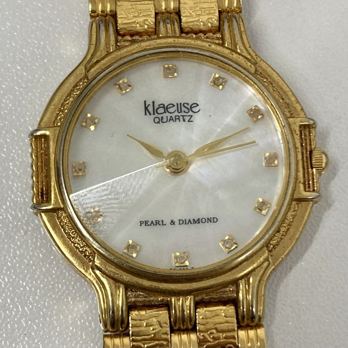 「1円スタート」klaeuse クロイゼ 腕時計 クォーツ 不動 ゴールド 金時計 ペアウォッチ 電池交換要 サイズ調整可能 シェル文字盤 1017CP①