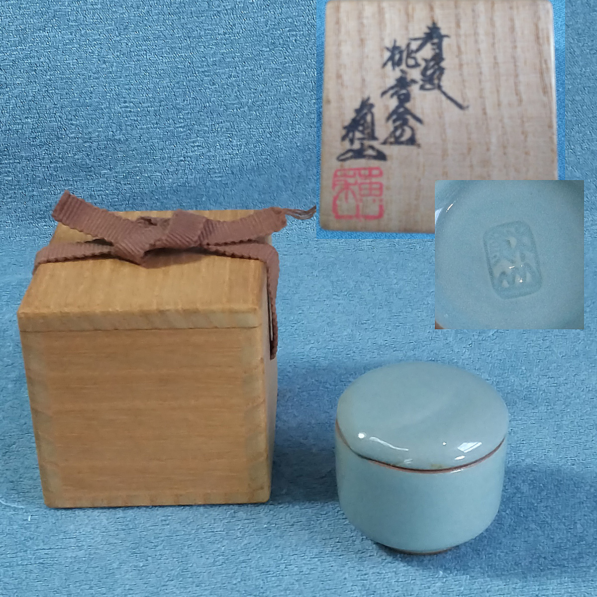 Product name: 【HS】B05「京焼 三代 諏訪蘇山 青瓷 桃香盒 香合 茶道具」桐共箱