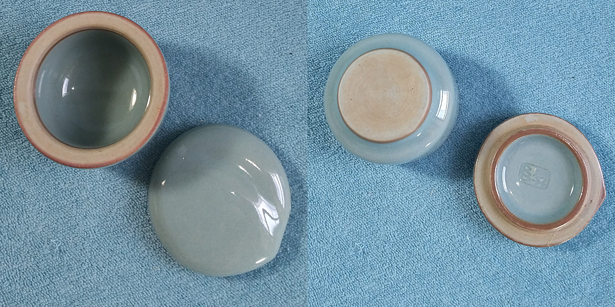 【HS】B05「京焼 三代 諏訪蘇山 青瓷 桃香盒 香合 茶道具」桐共箱