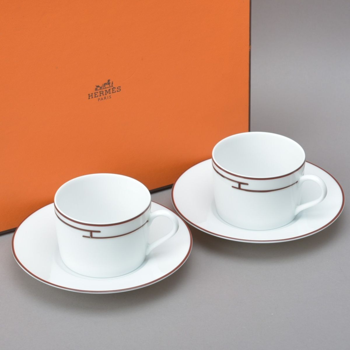 Product name: 新品 HERMES エルメス リズム カップ&ソーサー 2客セット レッド ホワイト ペア 食器 洋食器 ブランド #80※1009-11/TLk.g