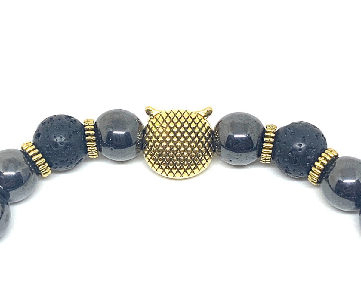 【Premio Fortuna】ヘマタイトふくろうブレスレット 自然な磁性鉱石 内周17.5センチ Qh8mxByz 020