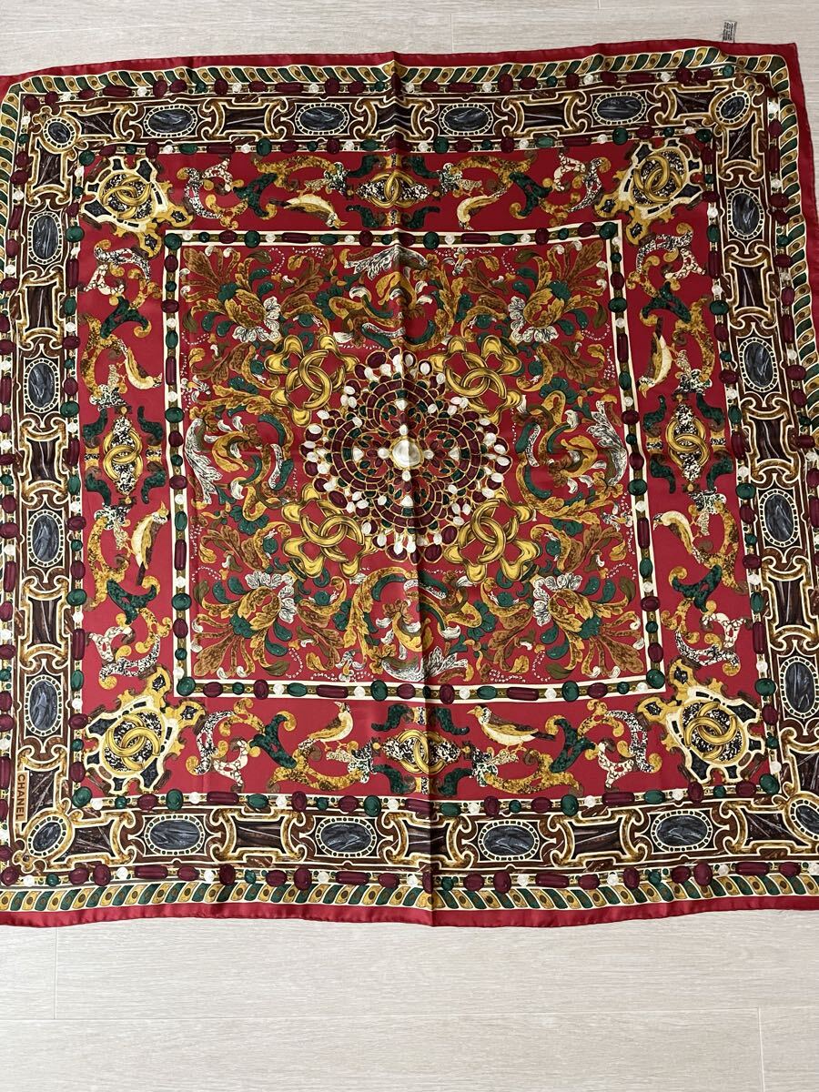 1000円~未使用近い!希少デザイン!正規品 極美品 CHANEL シャネル 大判 シルク スカーフ タグあり ヴィンテージ