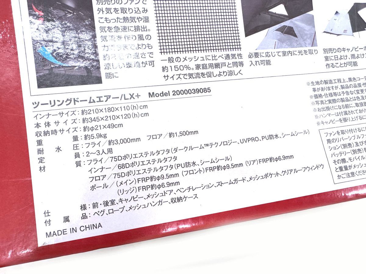 Product name: ★未使用未開封★ コールマン ツーリングドームエアー/LX+ COLEMAN TOURINGDOME AIR/LX+ エアー LX+ テント 2~3人用 MODEL 2000039085