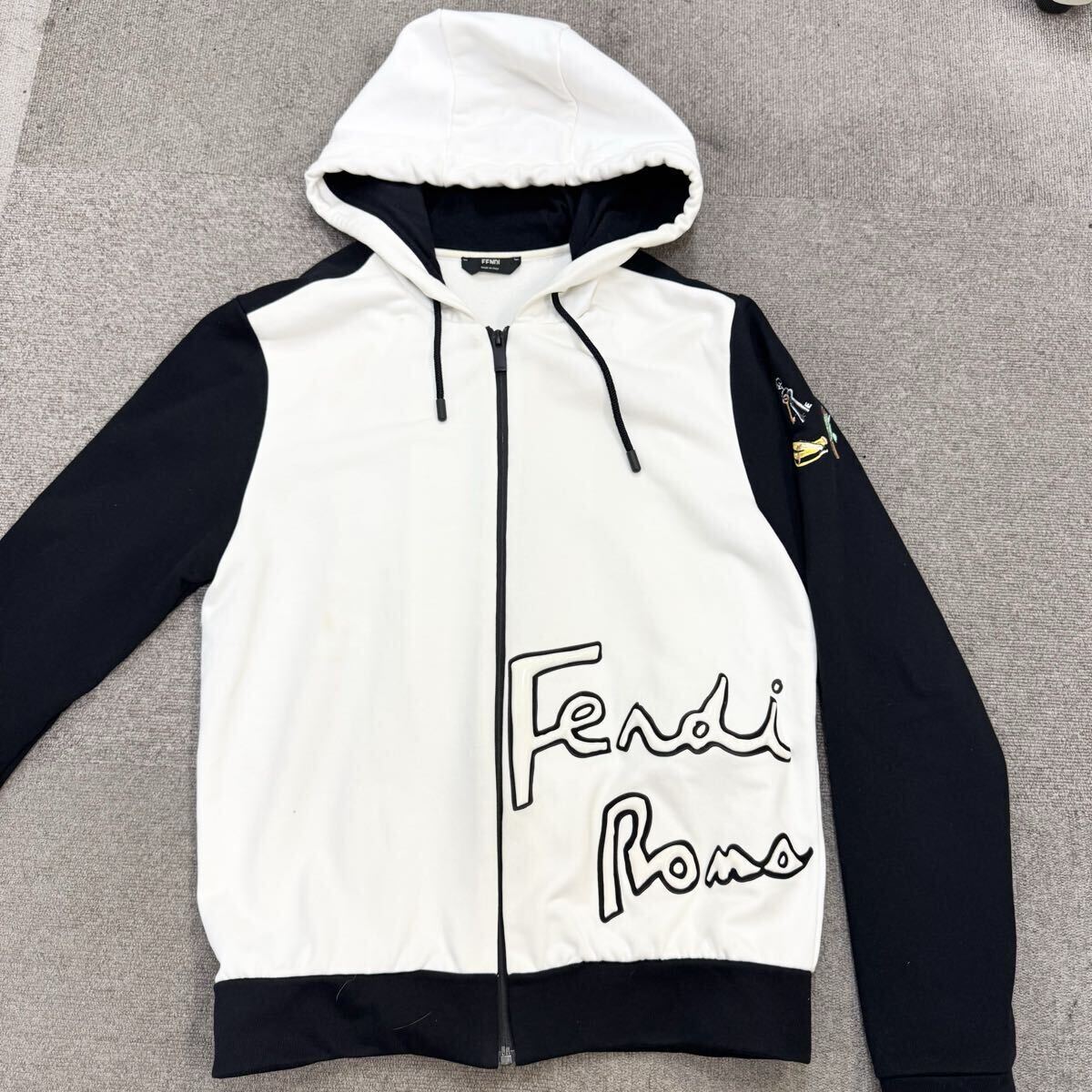 Product name: 16『極美品・現行タグ』 FENDI フェンディ メンズ ジップアップ パーカー スウェット 立体 ビッグロゴ 袖ロゴ 刺繍 バイカラー 44 M相当