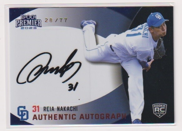 Product name: エポック 2023 中日 Premier 仲地礼亜 RC 直筆サイン カード 77枚限定