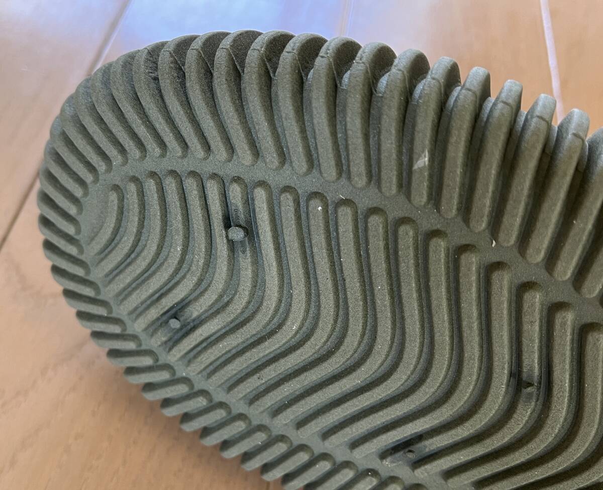 突き指や足のサイドに木や石などが当たるなどを防ぐ事とソールが剥がれる事が防げます。