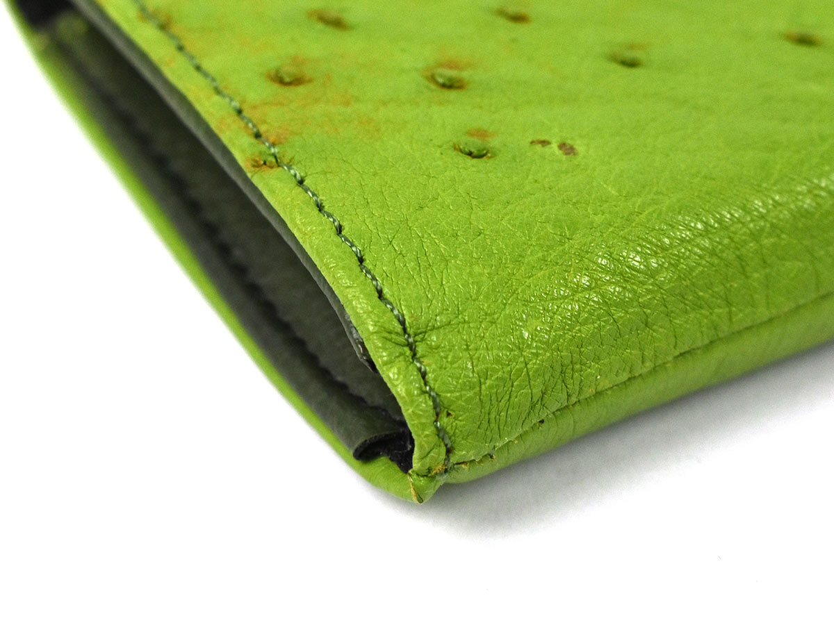 Product name: 237566□ オーストリッチ コインケース 財布 ウォレット ラウンドファスナー エキゾチックレザー 革 グリーン 緑 レディース 小物/ C