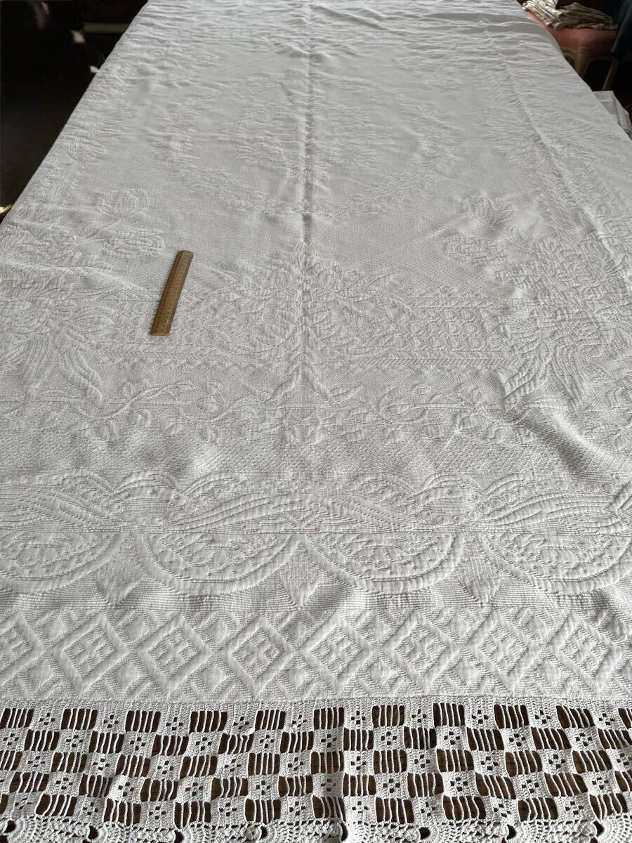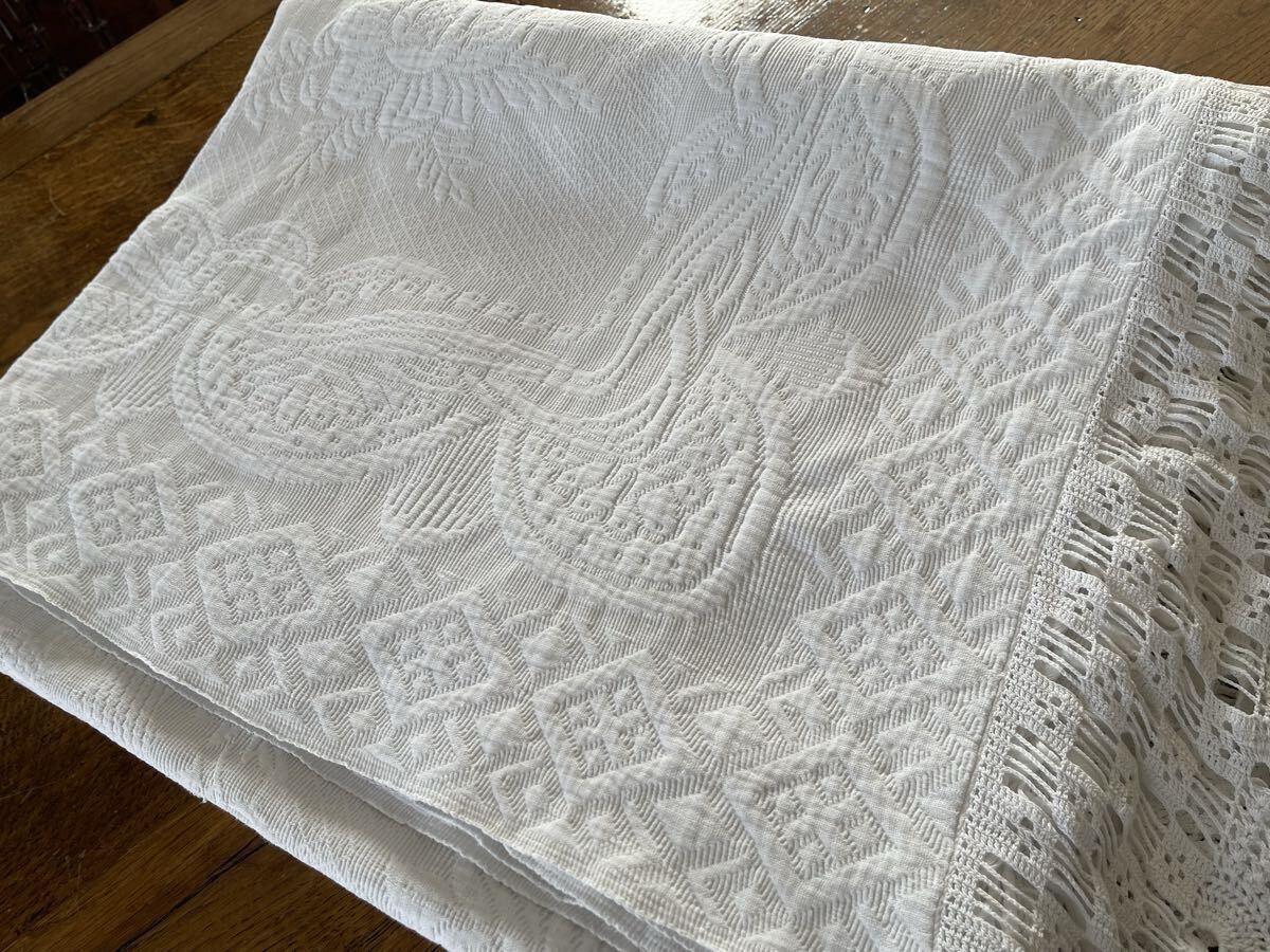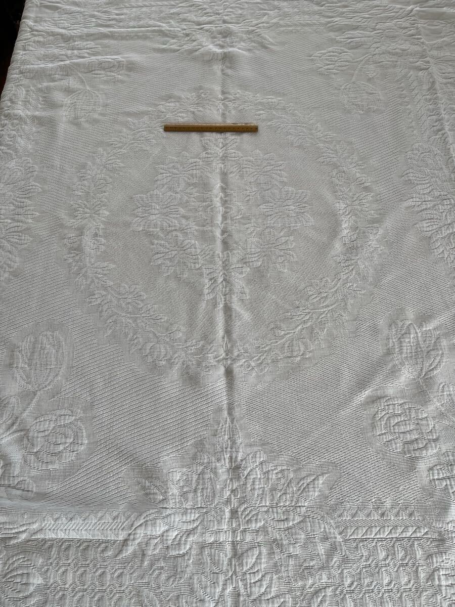 Product name: フランス アンティーク 大判クロス 薔薇織り柄ピケ・ド・マルセイユ ベッドカバー ブチ Boutis