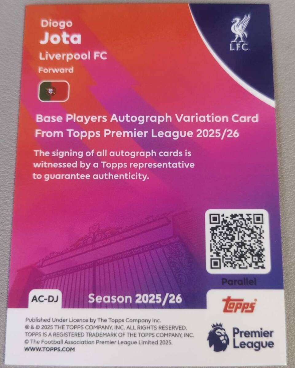 Product name: Diogo Jota ディオゴ・ジョッタ Topps Premier League 2025-26 /99 Auto サイン 直筆 Liverpool FC