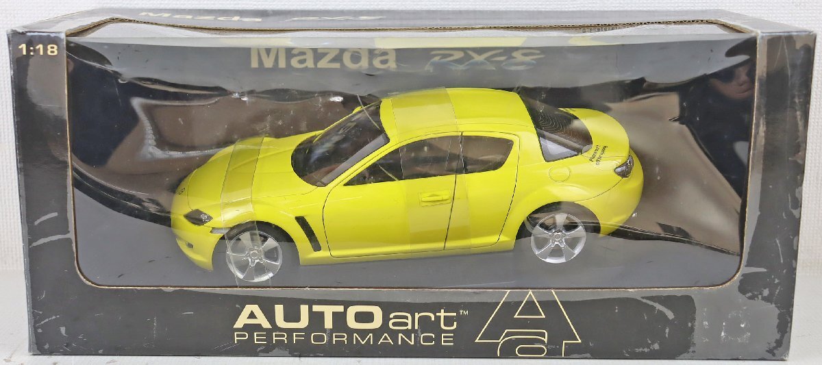 S◎中古品◎ミニカー『AUTOart Mazda RX-8 2003(RH DRIVE) ライトニングイエロー』 75926 オートアート 1/18スケール ※ミラー破損あり