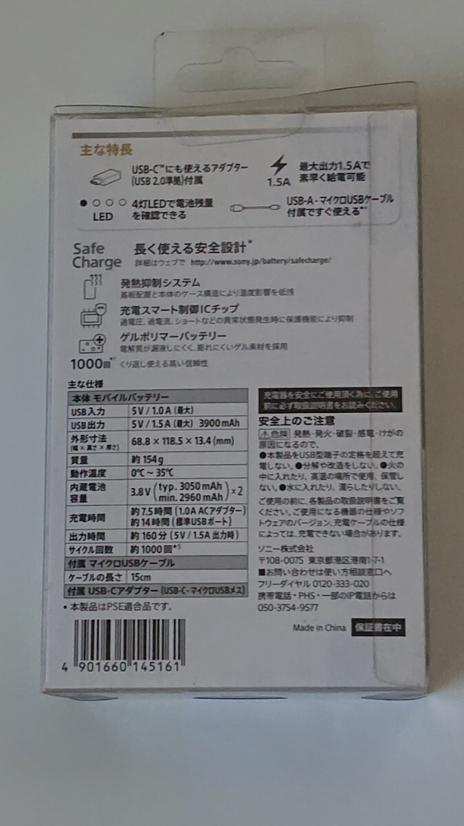 Product name: ★SONY モバイルバッテリー 6100mAh