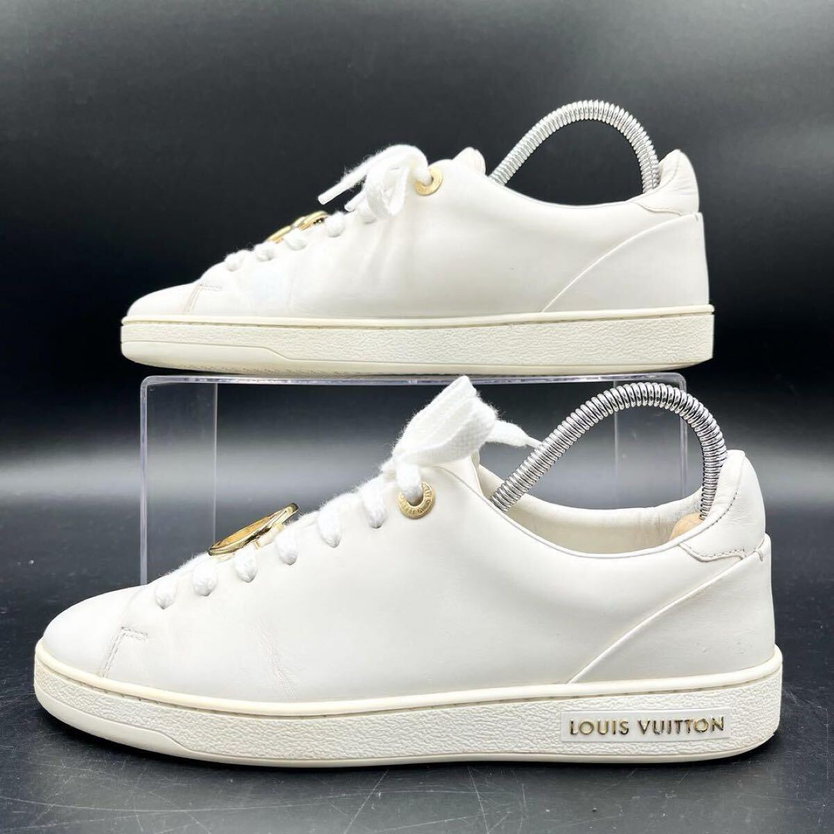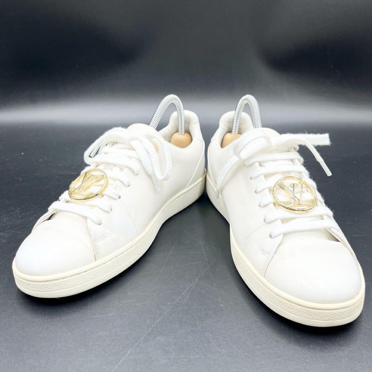 1円 【美品】 LOUIS VUITTON ルイヴィトン 【女王の貫禄】 フロントローライン サークルロゴ金具 スニーカー 靴 シューズ ホワイト 23.5cm