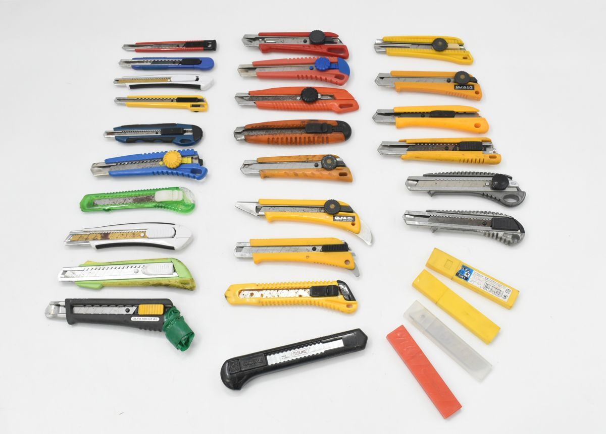 (1S 1020H5) 1円~ カッターナイフ 25本セット 替刃 4箱付き 内装 工事 クロス 文具 裁縫 事務 細工 工作 作業 工具 DIY まとめて