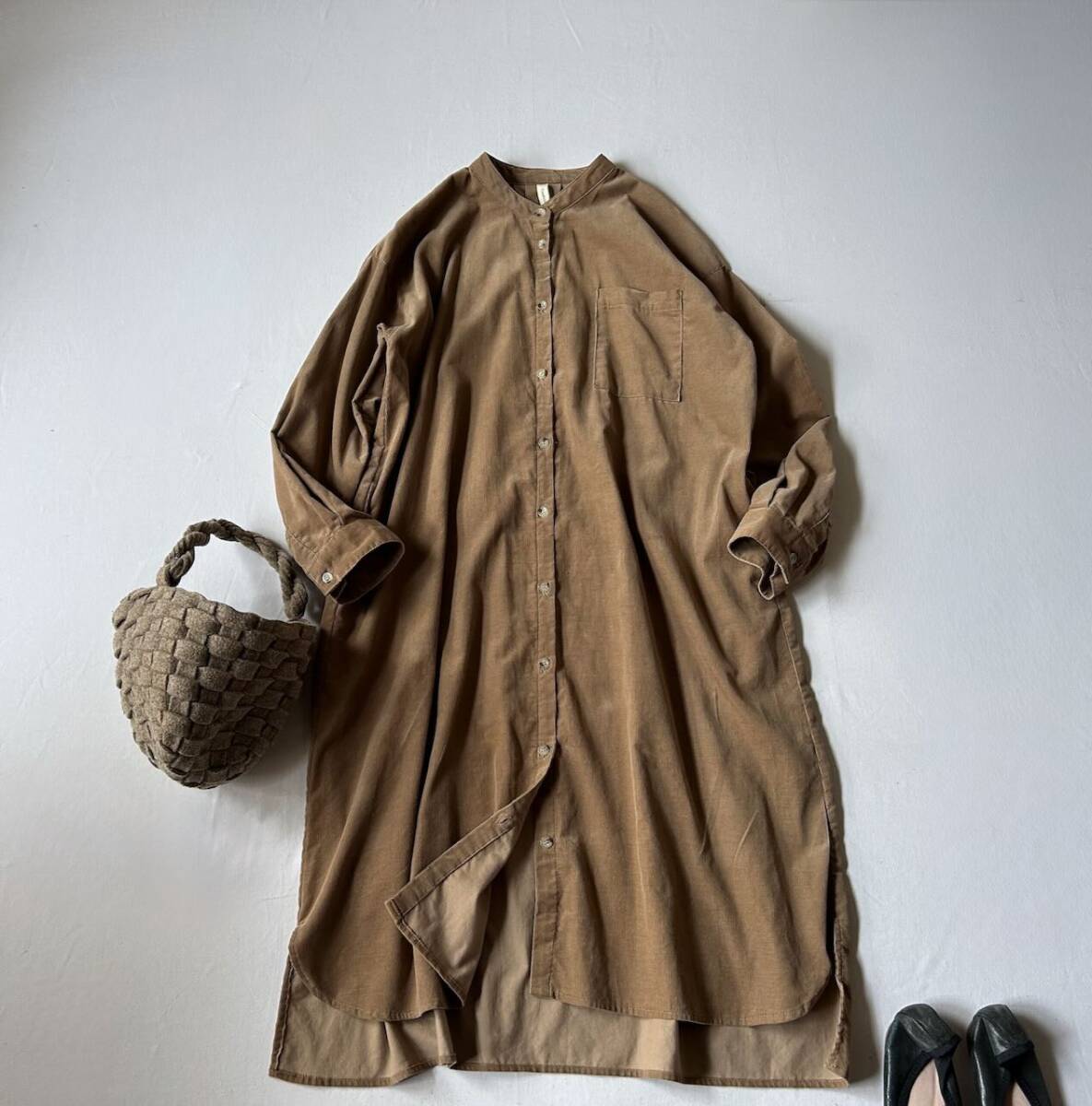 クラウドナイン cloudnineの、これからの季節に活躍してくれるコーデュロイ素材のバンドカラーシャツワンピースです。