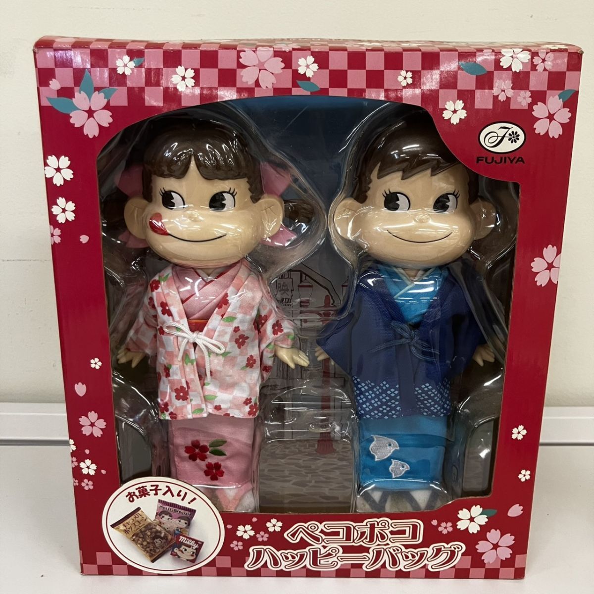 Product name: W005-HR1-366 不二家 FUJIYA ペコポコ ハッピーバッグ ペコちゃん ポコちゃん 2体セット 高さ約21㎝ 人形 2008年 箱付き HA