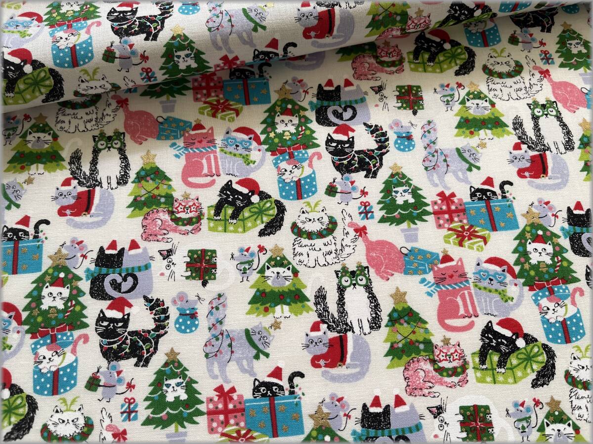Product name: mets★5m*ネコ猫*クリスマス*スケア*off white*Xmas*生地布地2A