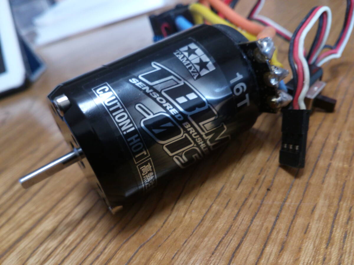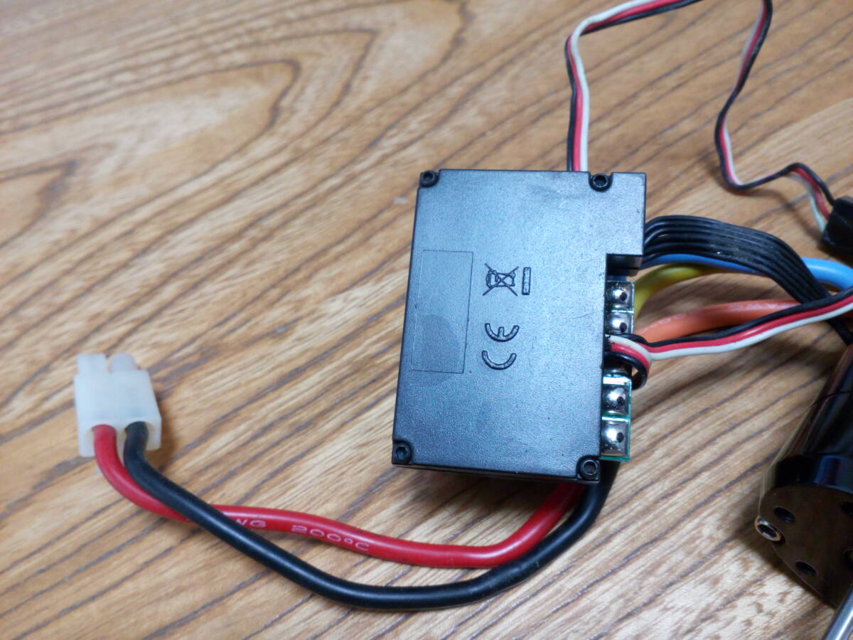 オークションにてフルセットにて購入したときに付いていたブラシレスアンプモーターのセット品です。アンプはバック付き、センサー付きです。モーターは16Tです。作動確認済みです。ぜひいかがでしょうか。発送はレターパック600円にておこないます。よろしくお願いいたします。
