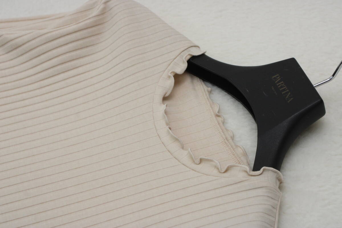 Product name: 5126 新品タグ付き メロウフリルリブカットソー ライトベージュLサイズ