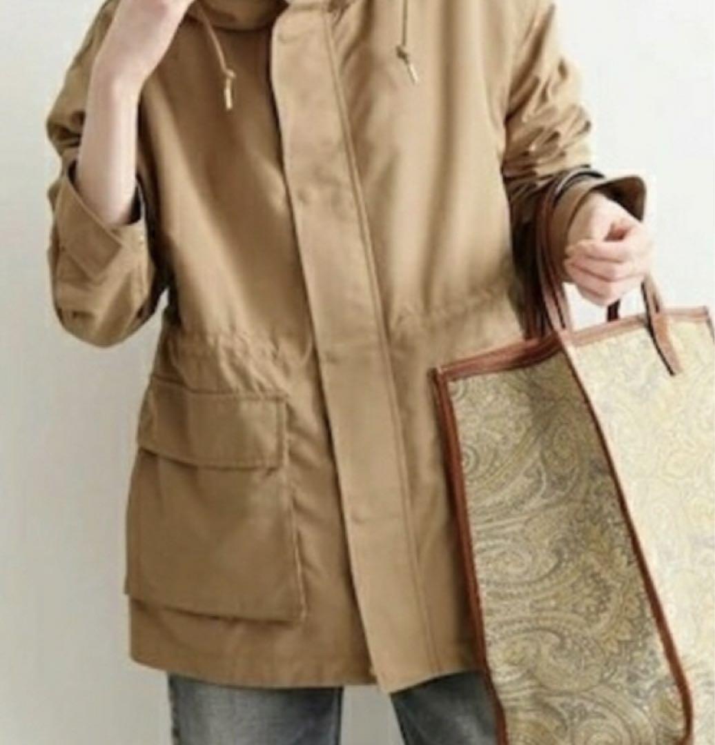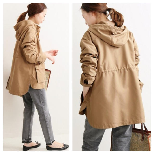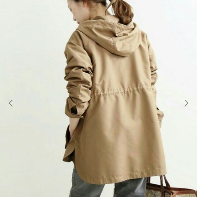IENA 高密度タフタフーデットブルゾン 定価¥26400 カラー キャメルベージュ サイズ38 ウエストは紐が付いておりシェイプする事もでき、女性らしいラインも出せます。サイドスリット入りでボトムとも合わせやすいです。サイトよりIENA ハリのある素材を使用したフーデッドブルゾン。密度の高い生地を用い、程よい光沢感と見た目以上に軽いのが特徴です。サイドのスリットや前後差のある裾が、こなれ感のあるニュアンスデザイン。ご自宅で洗えて、しわになりにくいのも魅力です。ボトムを選ばずご着用できる一枚は、普段使いしやすい万能アイテムです。