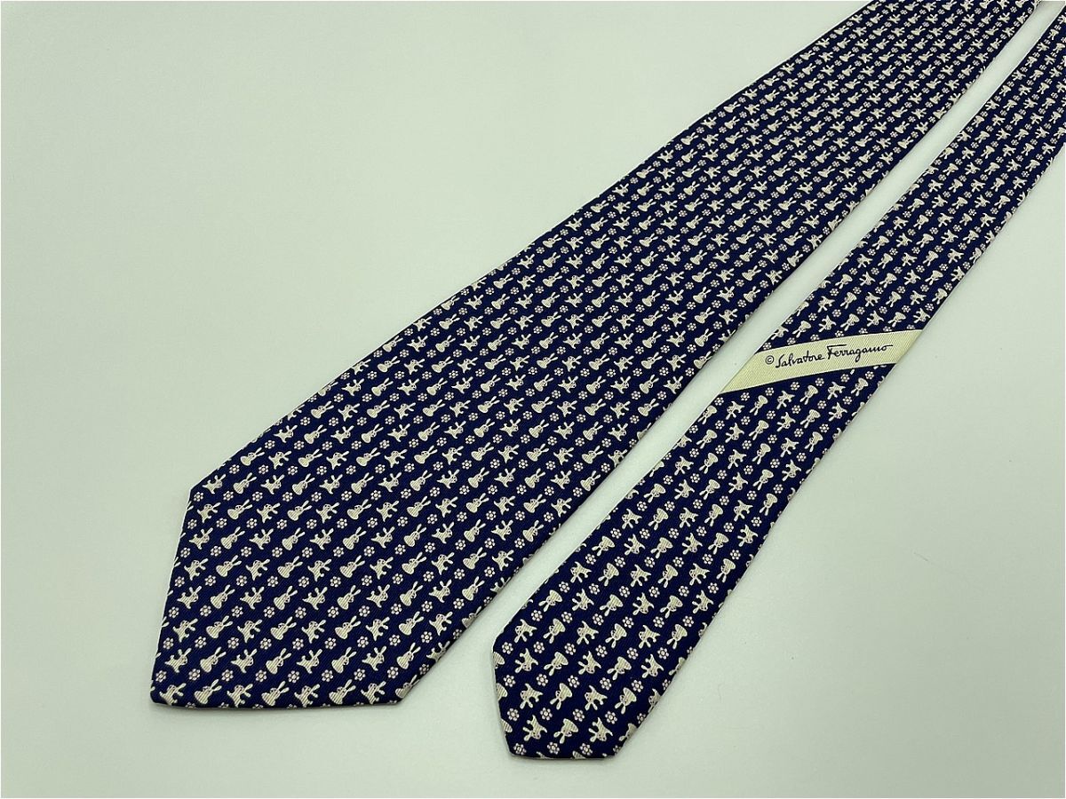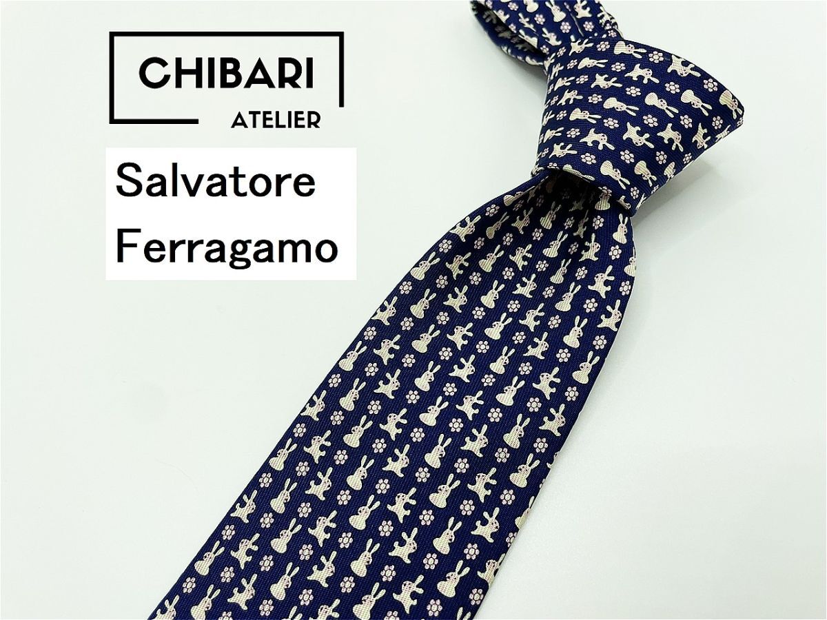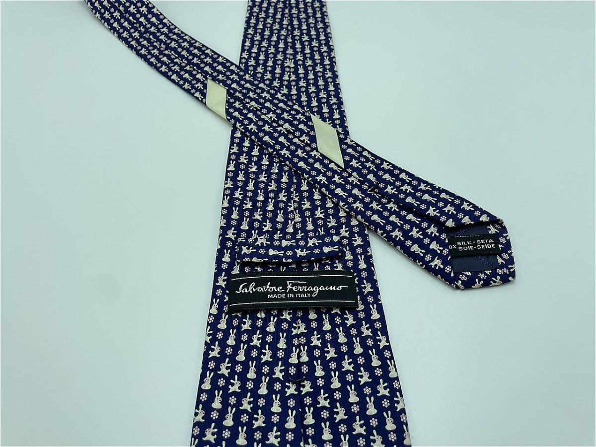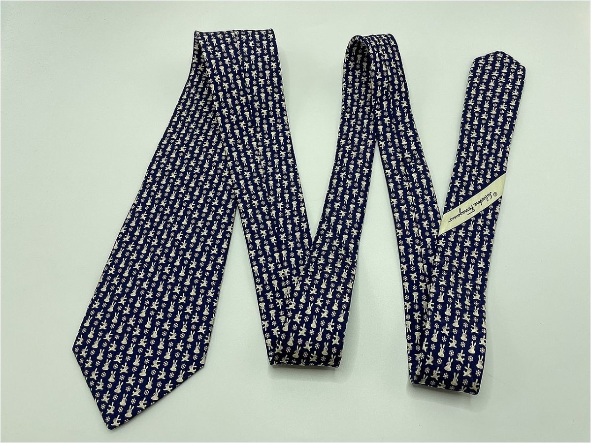 Product name: 【新古品】Salvatore Ferragamo フェラガモ ウサギさん柄 ネクタイ 3本以上 送料無料 メンズ ネイビー 0904064