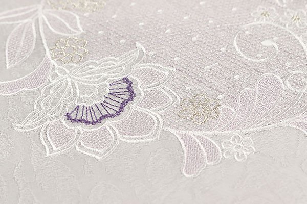 無地場にはレースのような模様が施されており、お洒落な印象でございます。