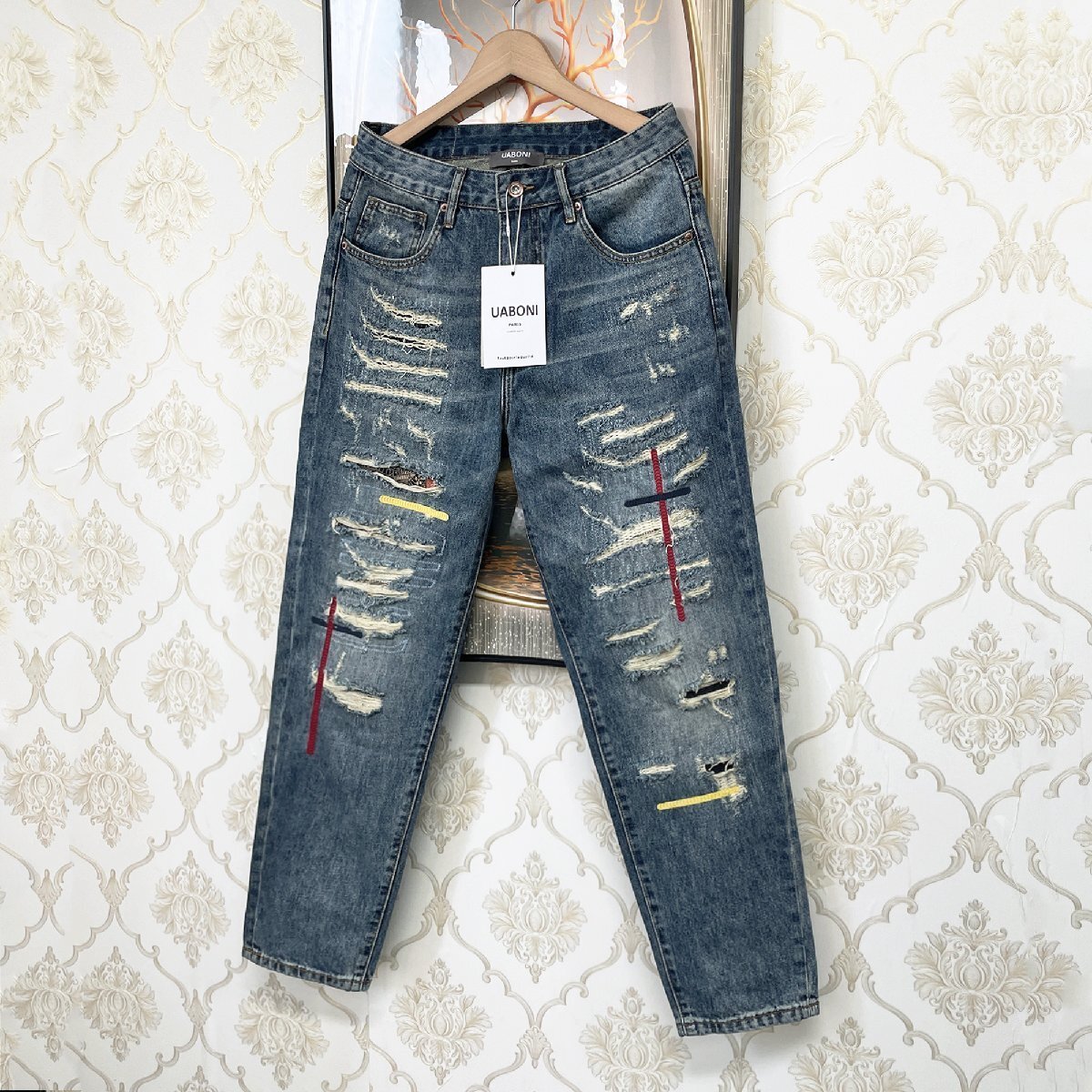 Product name: 個性EU製&定価5万◆UABONI*Paris*ジーンズ*ユアボニ*パリ発◆ソフト 通気 ダメージ加工 刺繍 デニムパンツ ストリート系 街着 サイズ30