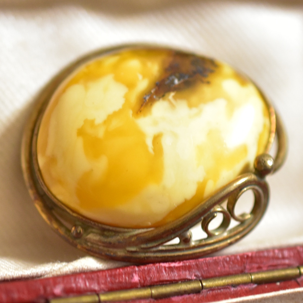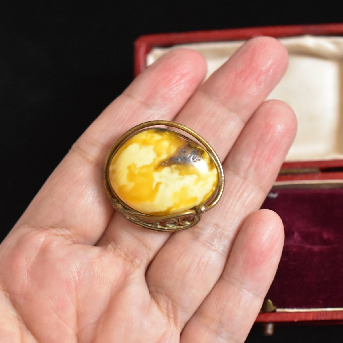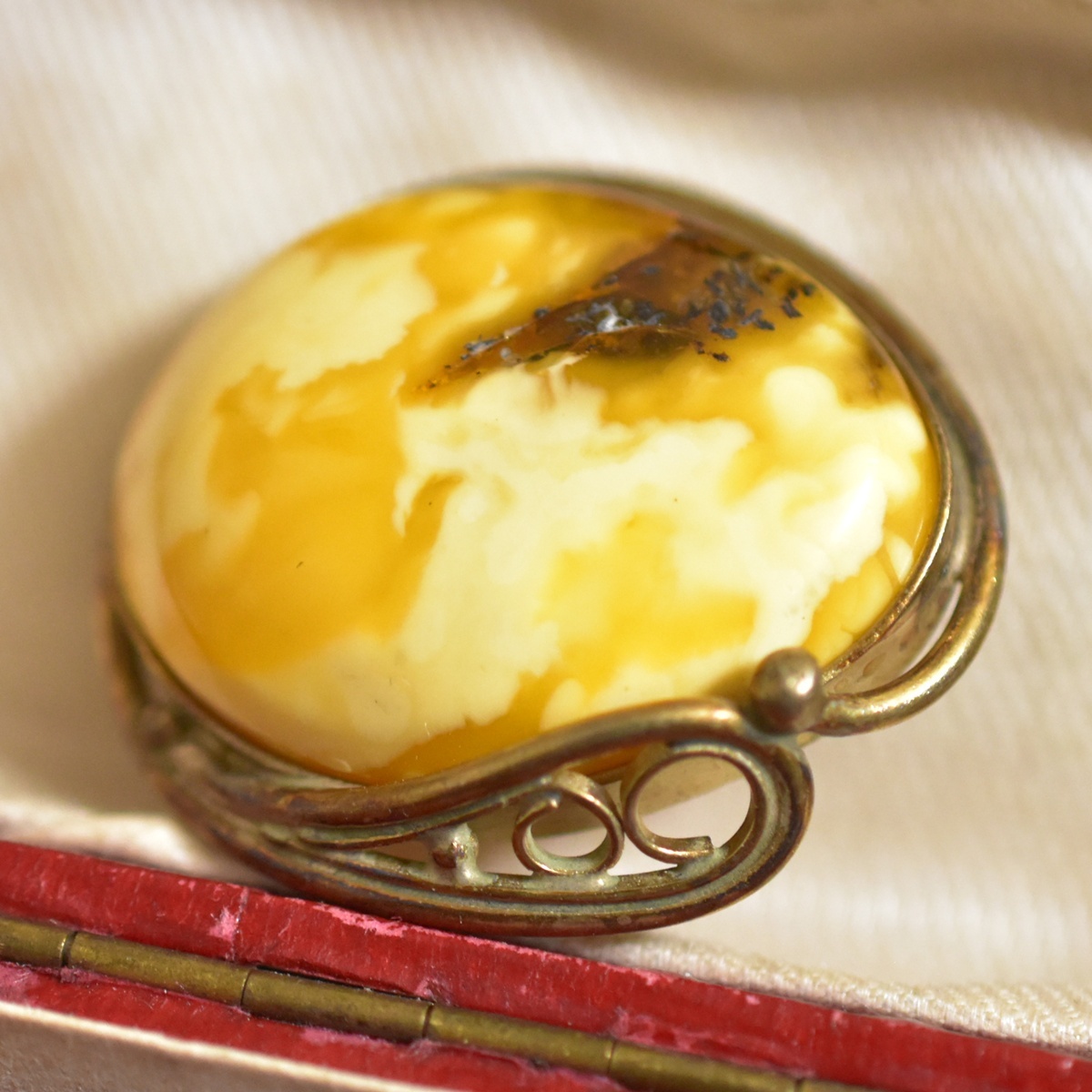 希少 アンティーク 大粒な乳白琥珀/ロイヤルアンバー/ミルキーこはくのブローチ 19世紀後期~20世紀初頭ごろ オーストリアより 本物保証