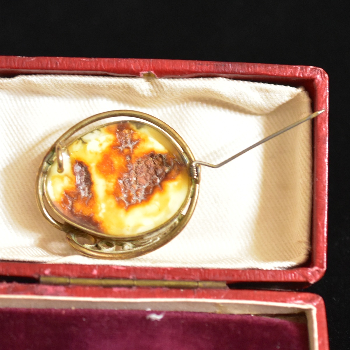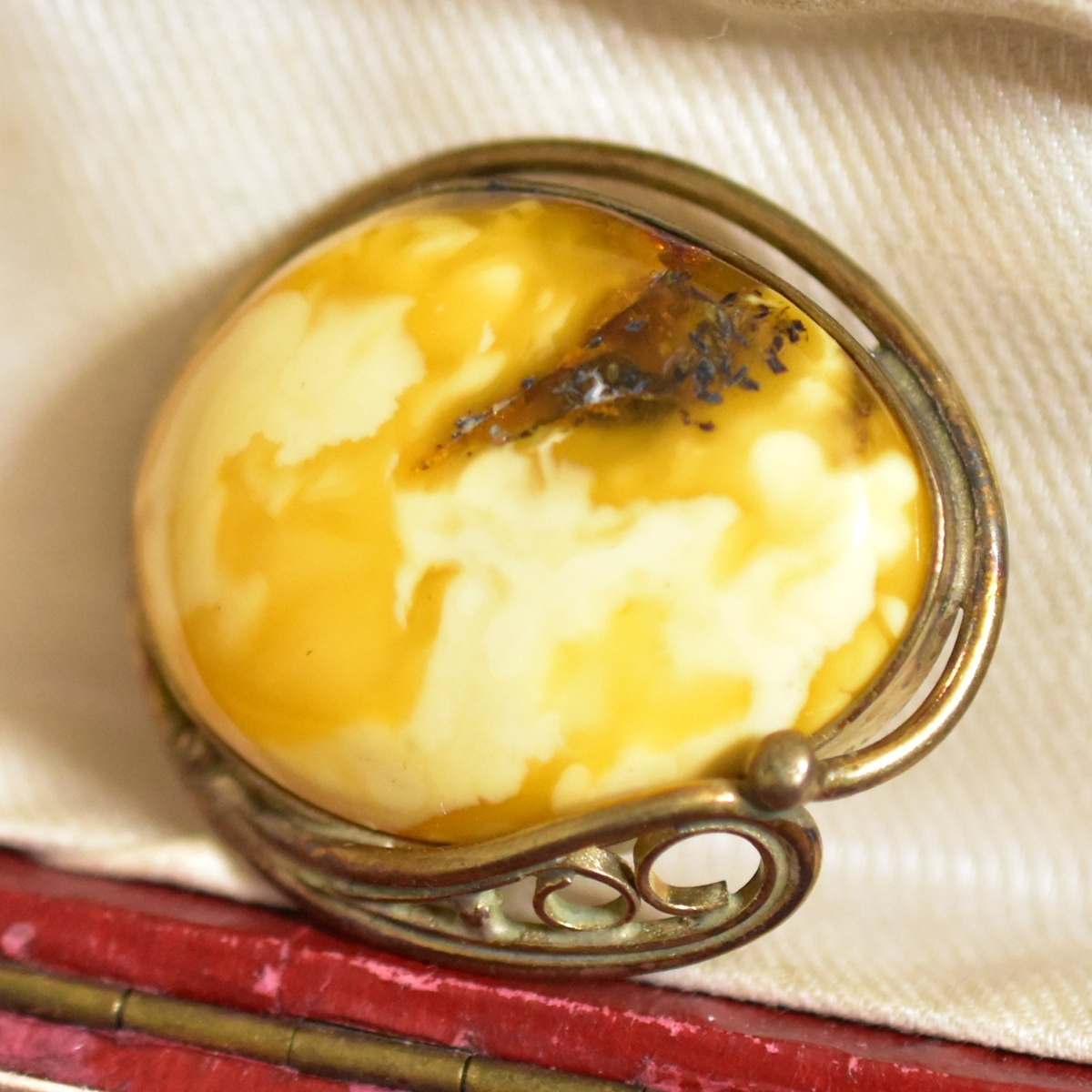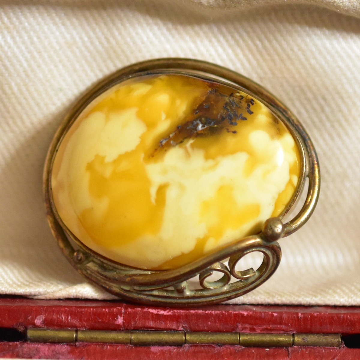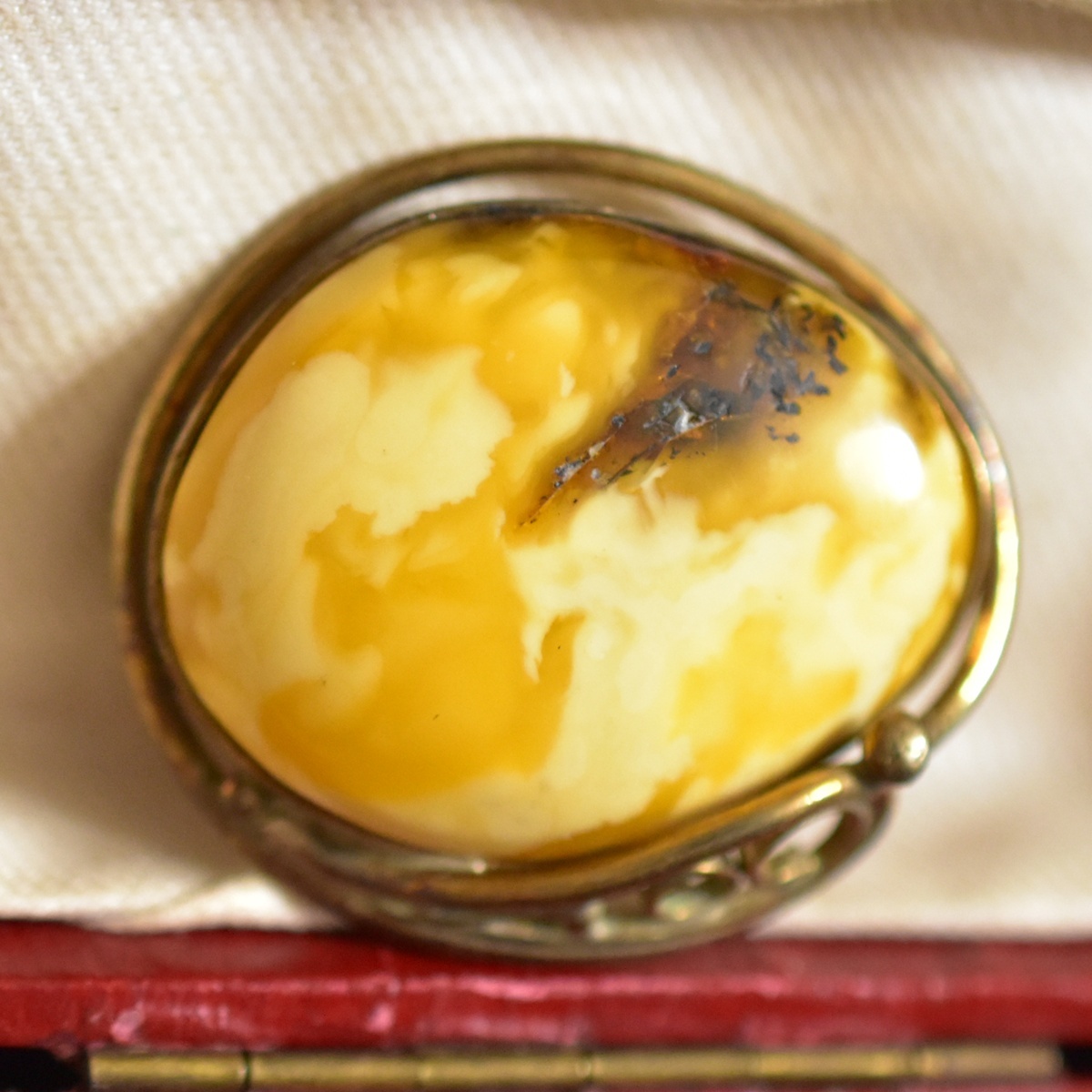希少 アンティーク 大粒な乳白琥珀/ロイヤルアンバー/ミルキーこはくのブローチ 19世紀後期~20世紀初頭ごろ オーストリアより 本物保証