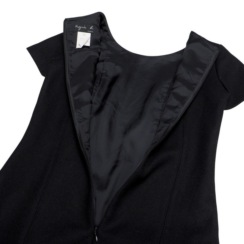 Product name: TJ5493#アニエスベー*agnes b.*半袖フレアワンピース*フォーマル*ボックスプリーツ*膝丈*ブラック系*サイズ38