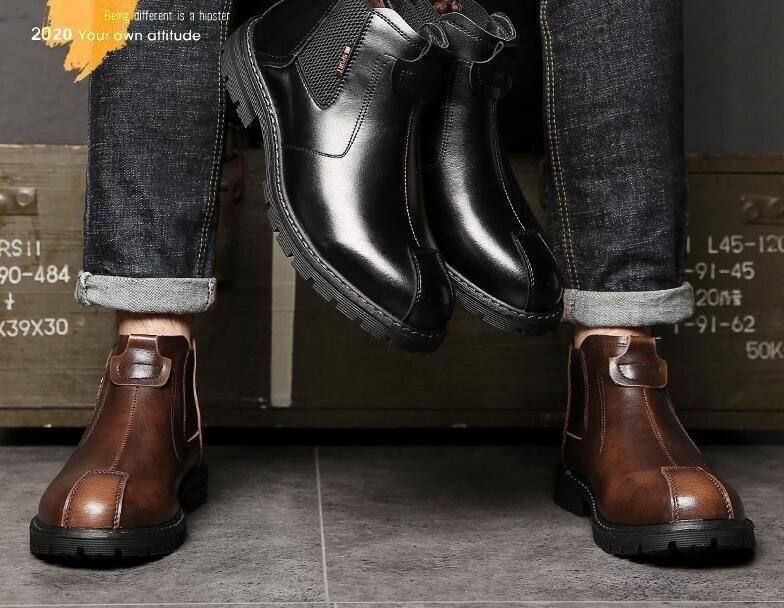 Product name: 新品!メンズ チェルシーブーツ 牛床革 革靴 シューズ ブーツ アウトドア 裏起毛 ブラウン 24cm~27cm