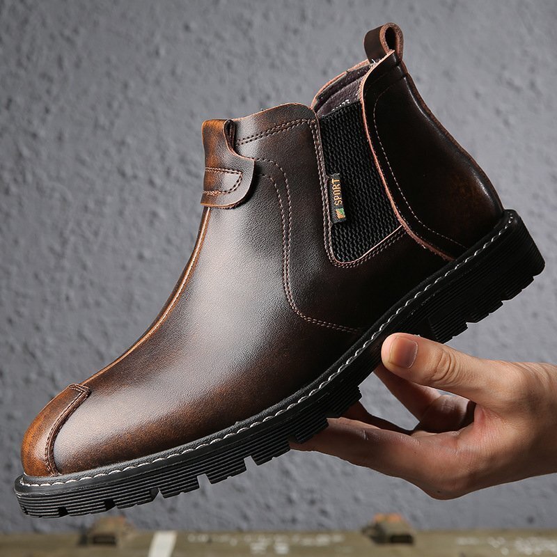 新品!メンズ チェルシーブーツ 牛床革 革靴 シューズ ブーツ アウトドア 裏起毛 ブラウン 24cm~27cm