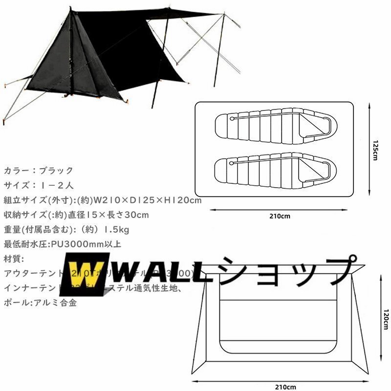 Product name: テント 1-2人用 広い前室 ツーリング コンパクト BCポリコットン素材 軽量 通気 簡単設営 キャンプ アウトドア 撥水 マット付き ブラック
