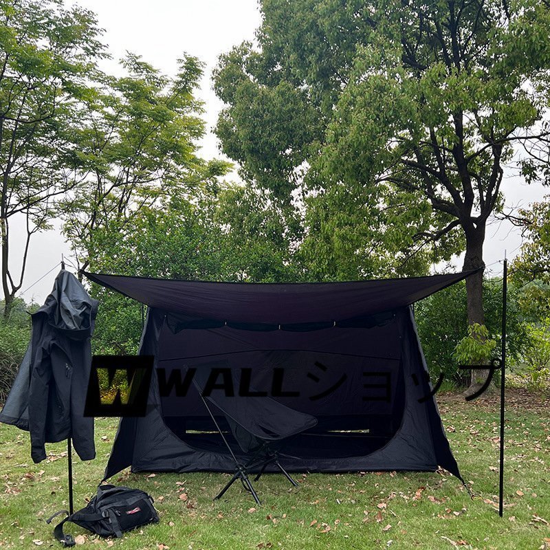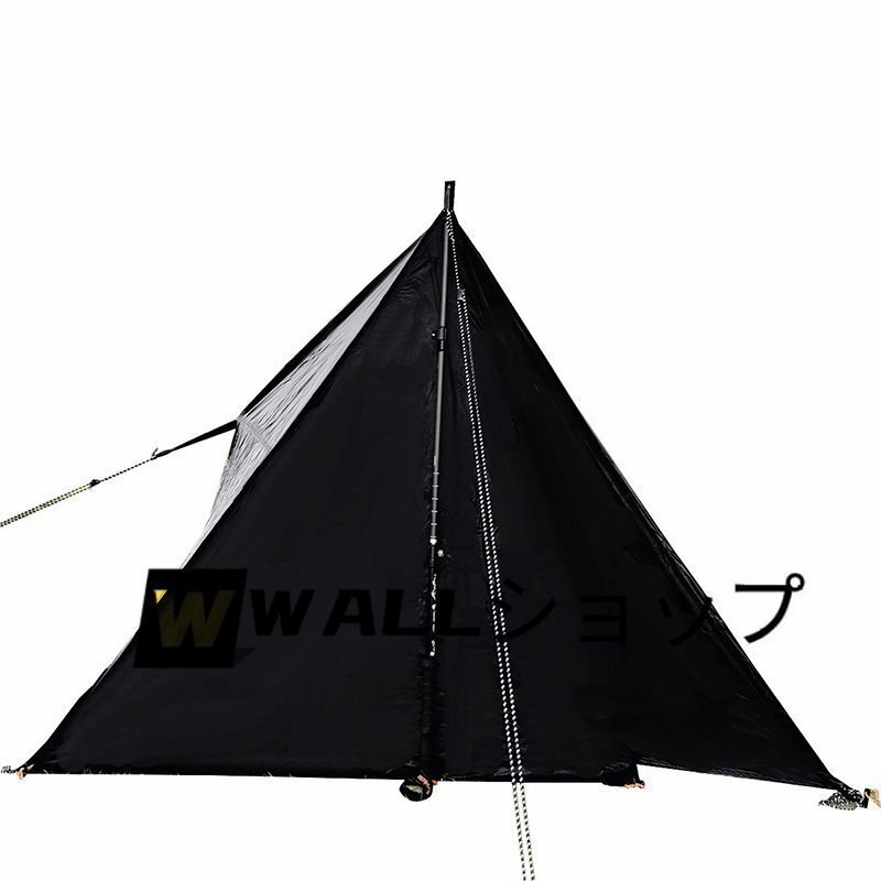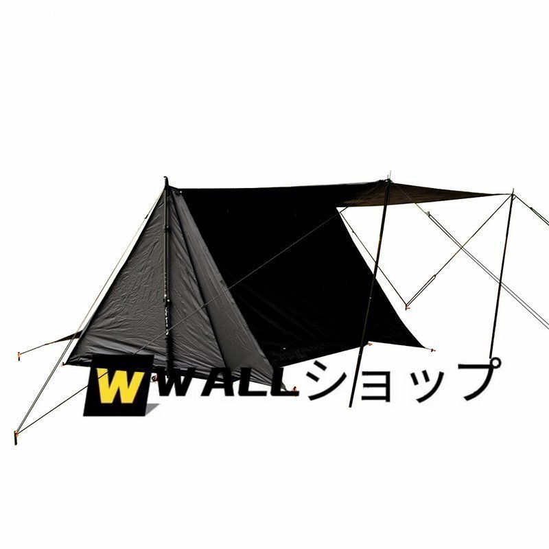 テント 1-2人用 広い前室 ツーリング コンパクト BCポリコットン素材 軽量 通気 簡単設営 キャンプ アウトドア 撥水 マット付き ブラック