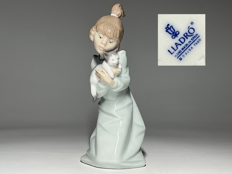 リヤドロ LLADRO 「眠そうな子猫」 少女 フィギュリン 陶器人形 置物